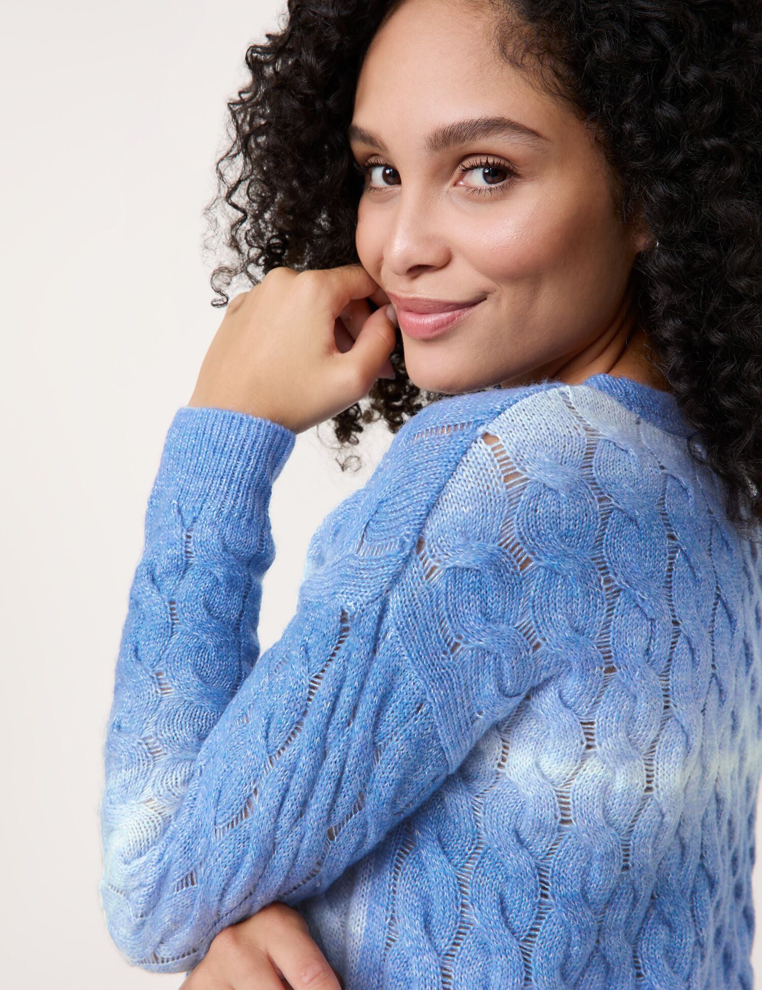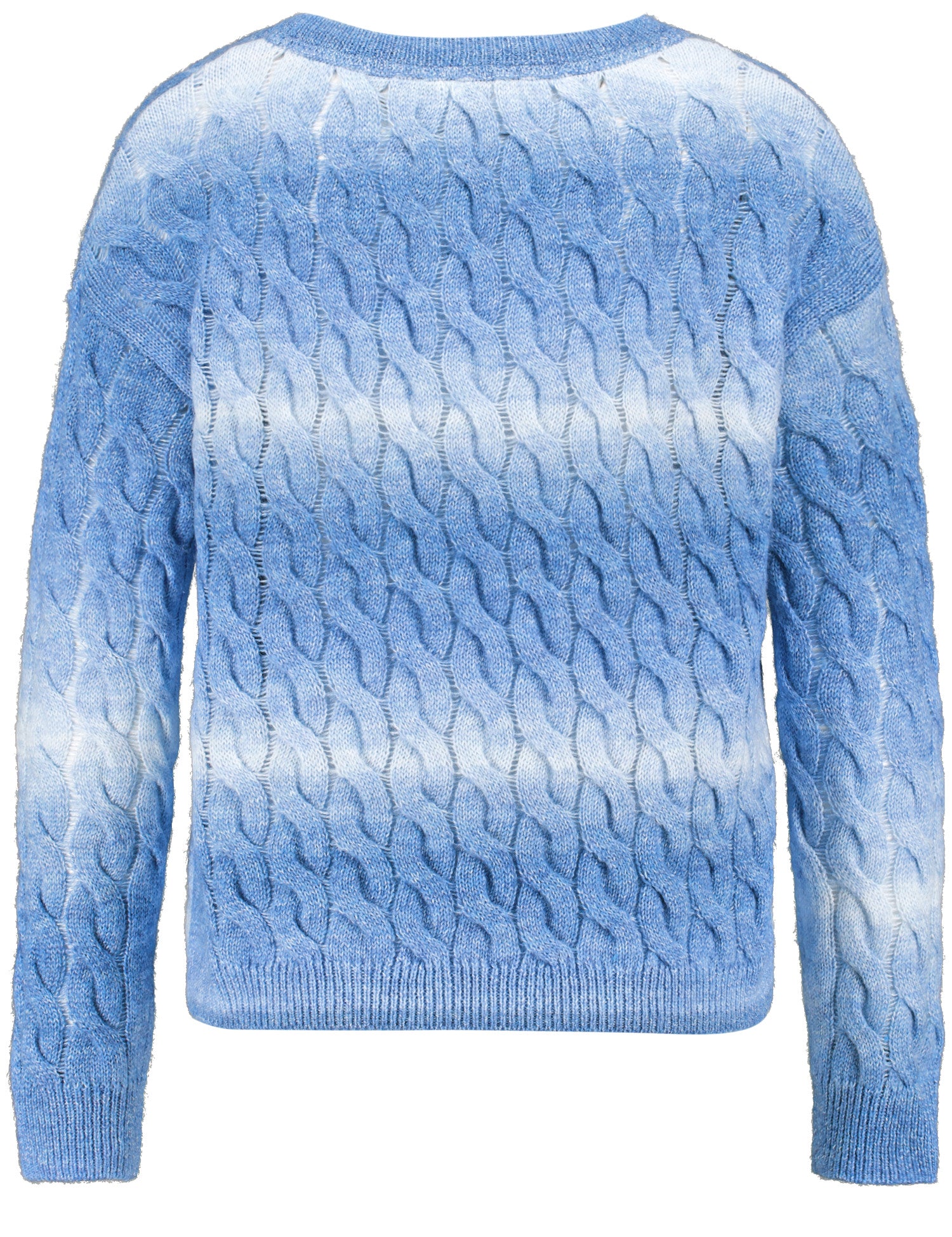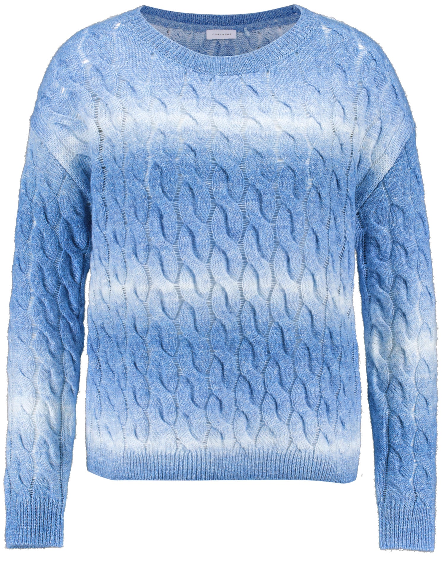 Gerippte Ausschnittblende und Saumabschlüsse. Dekoratives Zopfmuster. Wir lieben Strick! Dieses Modell überzeugt nicht nur durch ein dekoratives Zopfmuster und den zarten Farbverlauf. Auch der Material-Mix mit Wollanteil und die bequeme Passform laden zum Wohlfühlen ein. Eine breite Ausschnittblende in Rippstrick ergänzt den Gesamteindruck. Wagen Sie sich an ein modisches Outfit und kombinieren Sie eine klassisch-gestreifte Bluse, Wide Leg Jeans und Sneaker und zeigen Sie Ihren Sinn für Fashion.