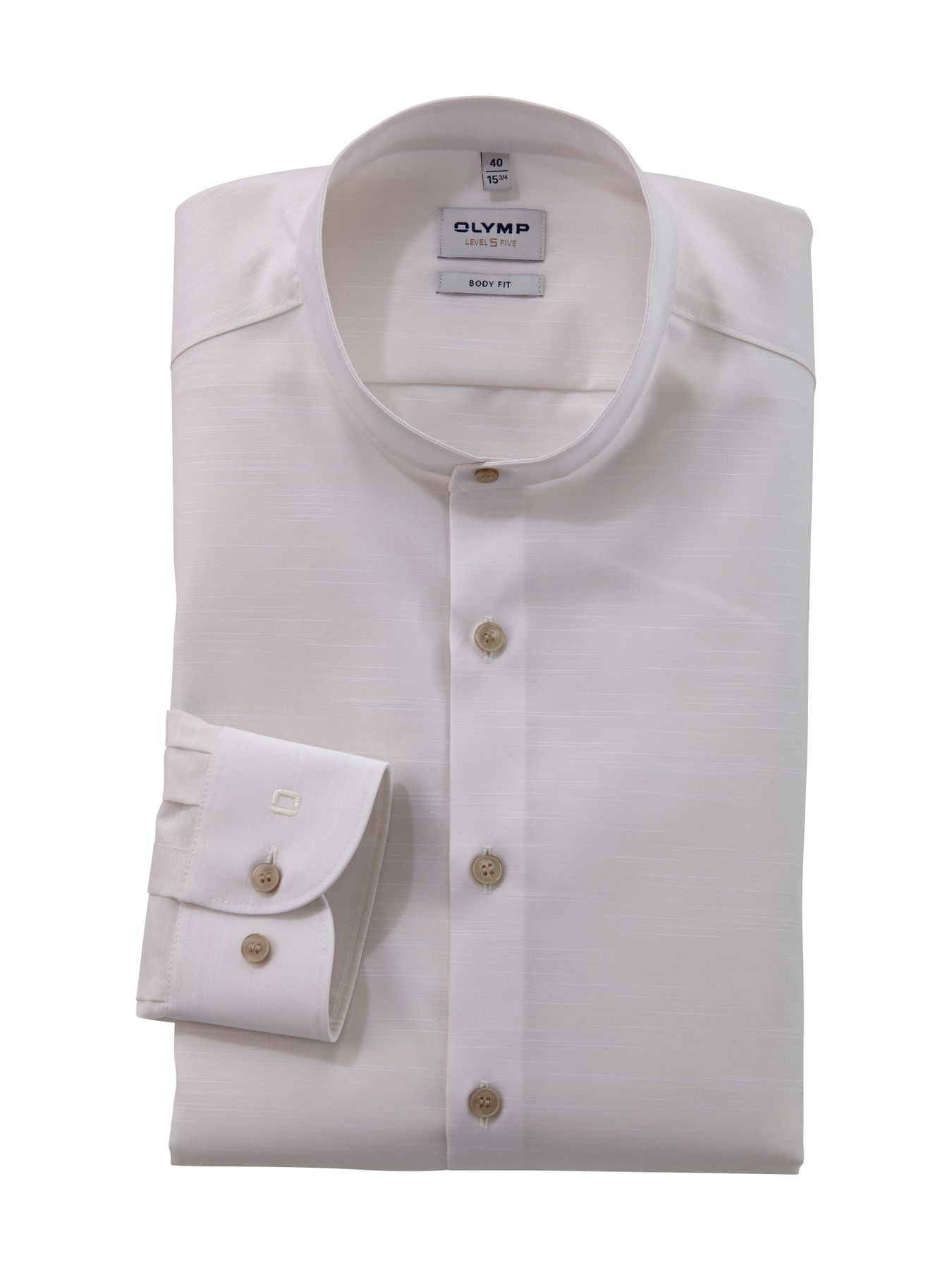 Wedding 2.0 – das Hochzeitsfest in Hellbeige und dazu abgestimmten OLYMP Accessoires feiern. Der feine Comfort Stretch des OLYMP Level Five sorgt für den hautsympathischen Tragekomfort und die schlanke, formbeständige Silhouette. Mit sportivem Stehkragen und lässig gerundetem Saum. Pflege- und bügelleicht. Extra langer Arm.