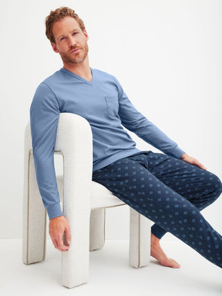 - Klassischer Herren Pyjama mit Knopfleiste und Brusttasche.