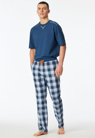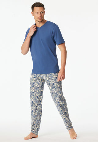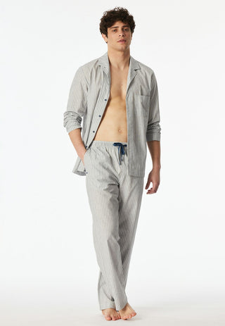 - Klassischer Herren Pyjama mit Knopfleiste und Brusttasche.