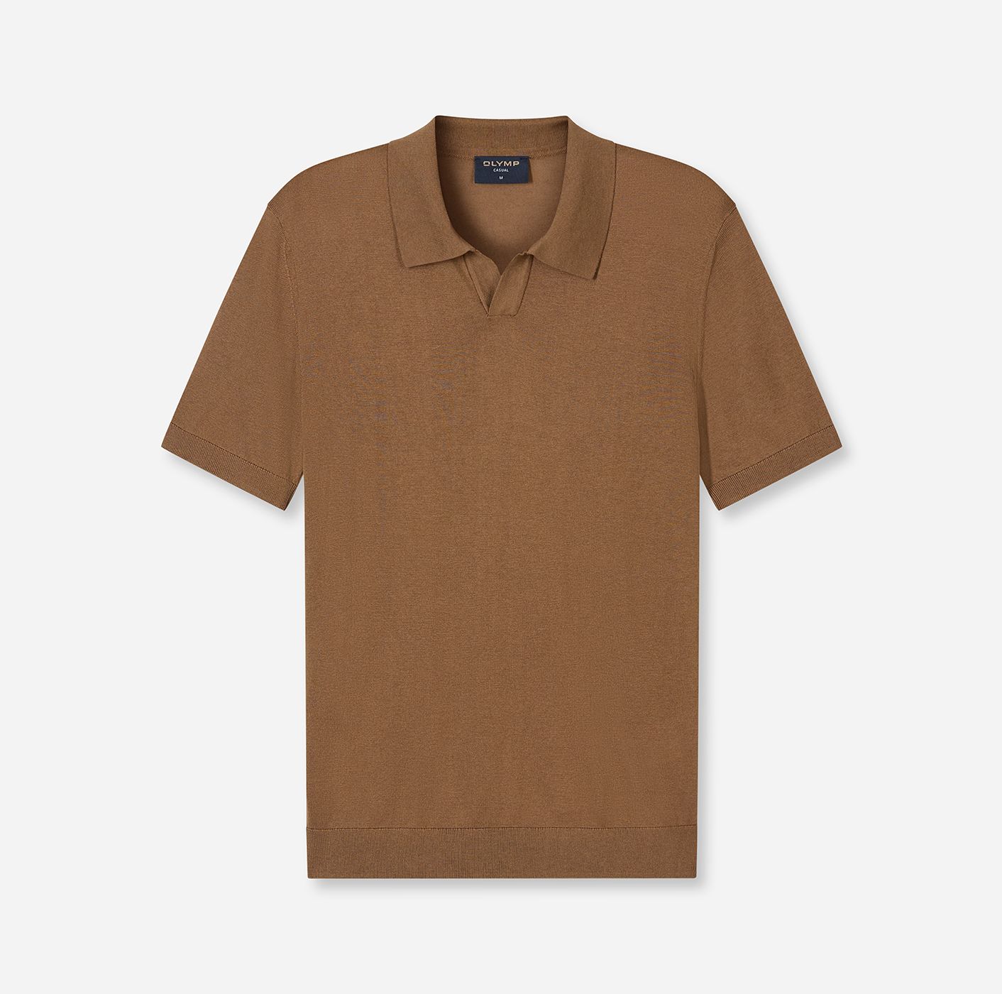 Das OLYMP Strick-Polo in Nougat. Rippbündchen an Ärmeln und Saum sorgen für saubere Abschlüsse und stabile Form. Der offene Kragen kommt ohne Knöpfe aus. Das Material aus 50% Baumwolle und 50% Lyocell liegt weich und glatt an. Ein zurückhaltendes Design, das schnell angezogen ist und immer ordentlich und hochwertig wirkt. Farbe