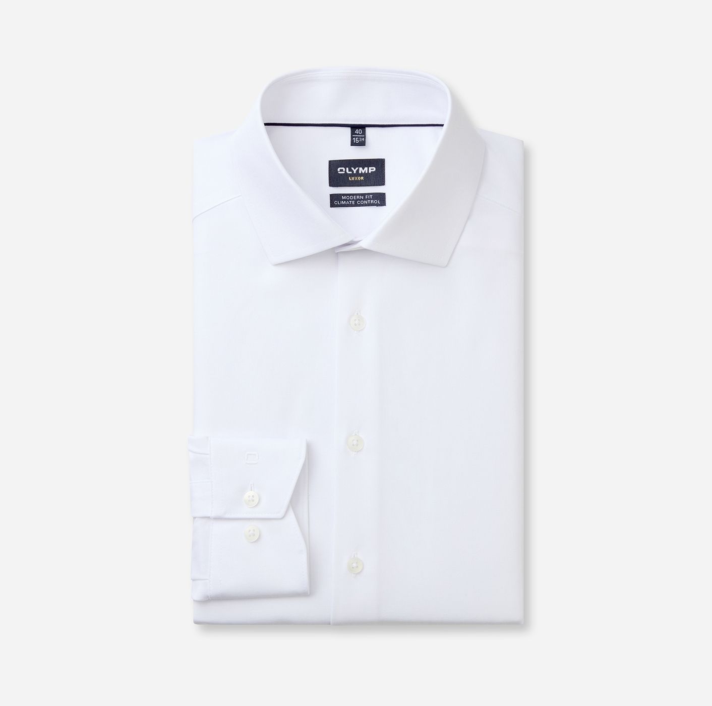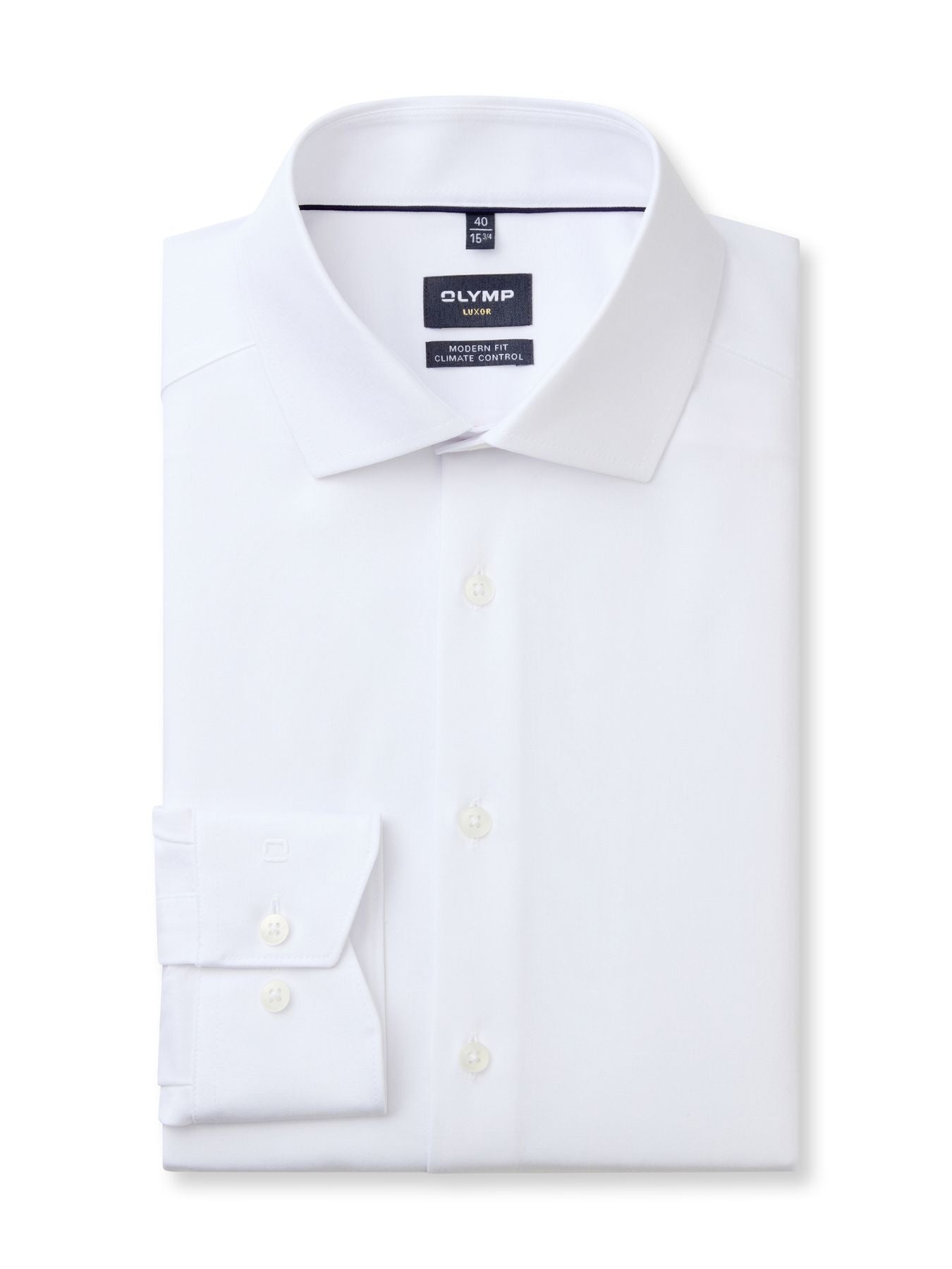 In strahlendem Weiß präsentiert sich dieses sportiv geschnittene OLYMP Luxor Businesshemd. Der innovative Climate-Control-Fasermix sorgt für das hautsympathische Tragegefühl. Die Textur ist pflegeleicht, atmungsaktiv, dehnbar, schnelltrocknend sowie temperatur- und feuchtigkeitsregulierend. Modischer Global Kent.