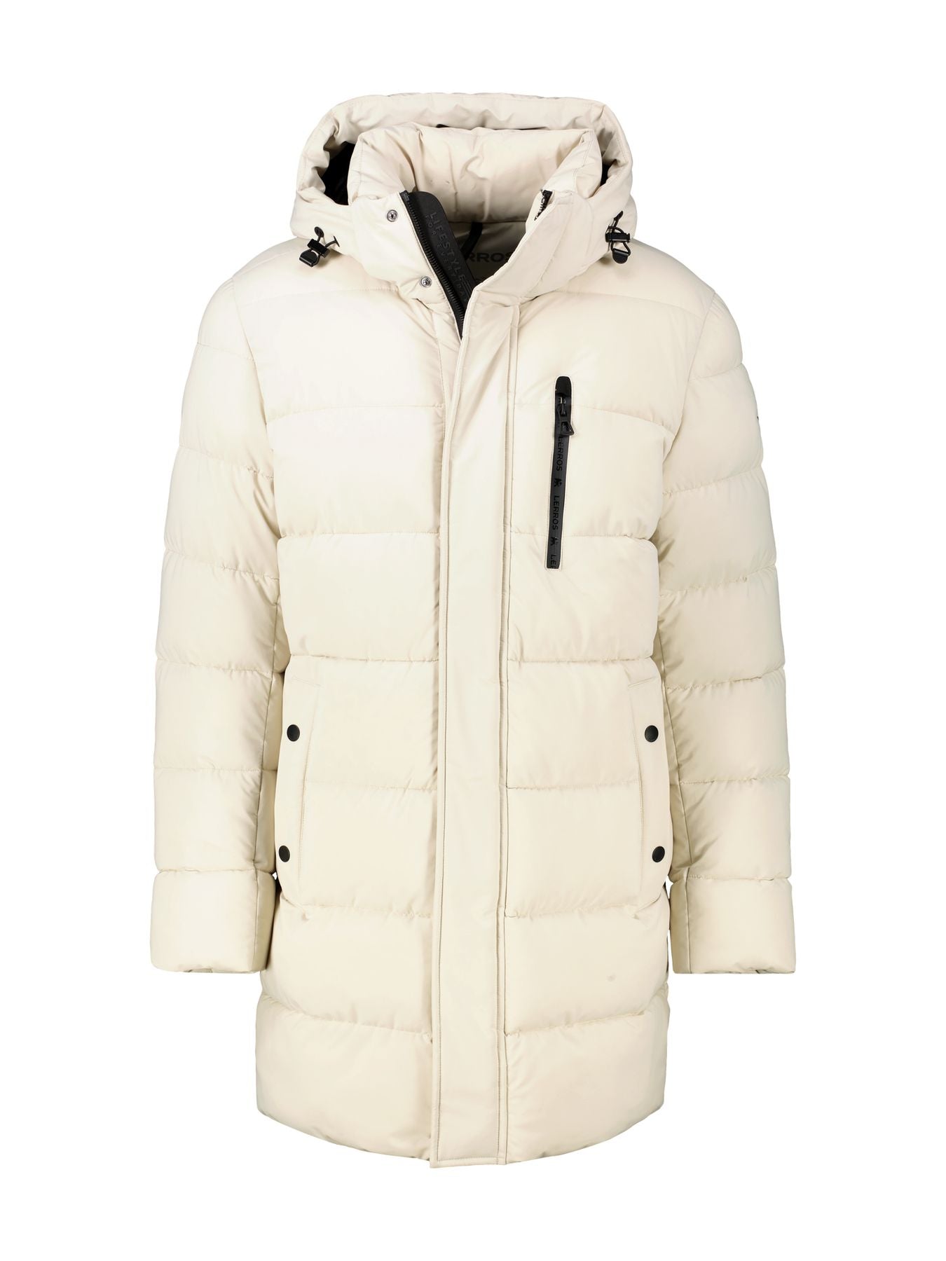 LERROS Steppjacke mit hohem Stehkragen und Kapuze! Diese Herrenjacke überzeugt durch ihr groß-gestepptes Design, die lange Schnittform und die abnehmbare Kapuze. Das wasserabweisende, atmungsaktive, knitterfreie und dehnbare Material mit Stretchanteil wird durch die warme Fütterung aus synthetisch erzeugten, extraleichten und PFC-freien Soronadaunen ergänzt und bietet somit hohen Tragekomfort und Schutz vor Kälte. Die verschließbaren Eingrifftaschen mit wärmendem Taschenfutter und der Zwei-Wege-Reißverschluss mit Windschutzleiste und die Ärmelsäume mit Windfang runden die Funktionalität dieser Outdoorjacke gekonnt ab.