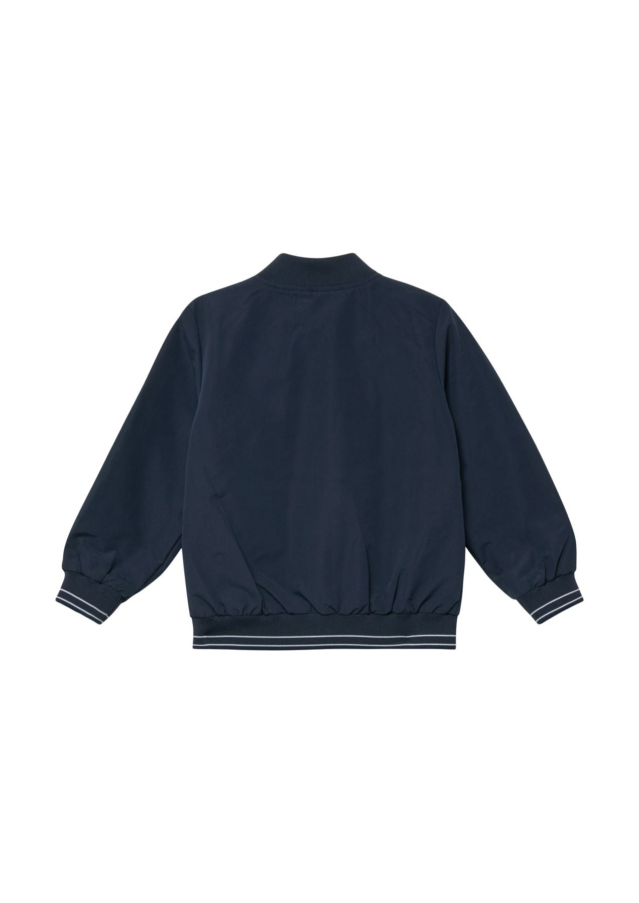 Stilvoller Blouson mit Reißverschluss und dekorativen Streifendetails für besondere Anlässe. Der Stehkragen und die Rippbündchen an Ärmeln und Saum sorgen für einen sportlich-eleganten Look. Dank Regular Fit und weicher Webware sitzt die Indoor-Jacke bequem. Mit praktischen Leistentaschen – ideal für festliche Events und schicke Momente!