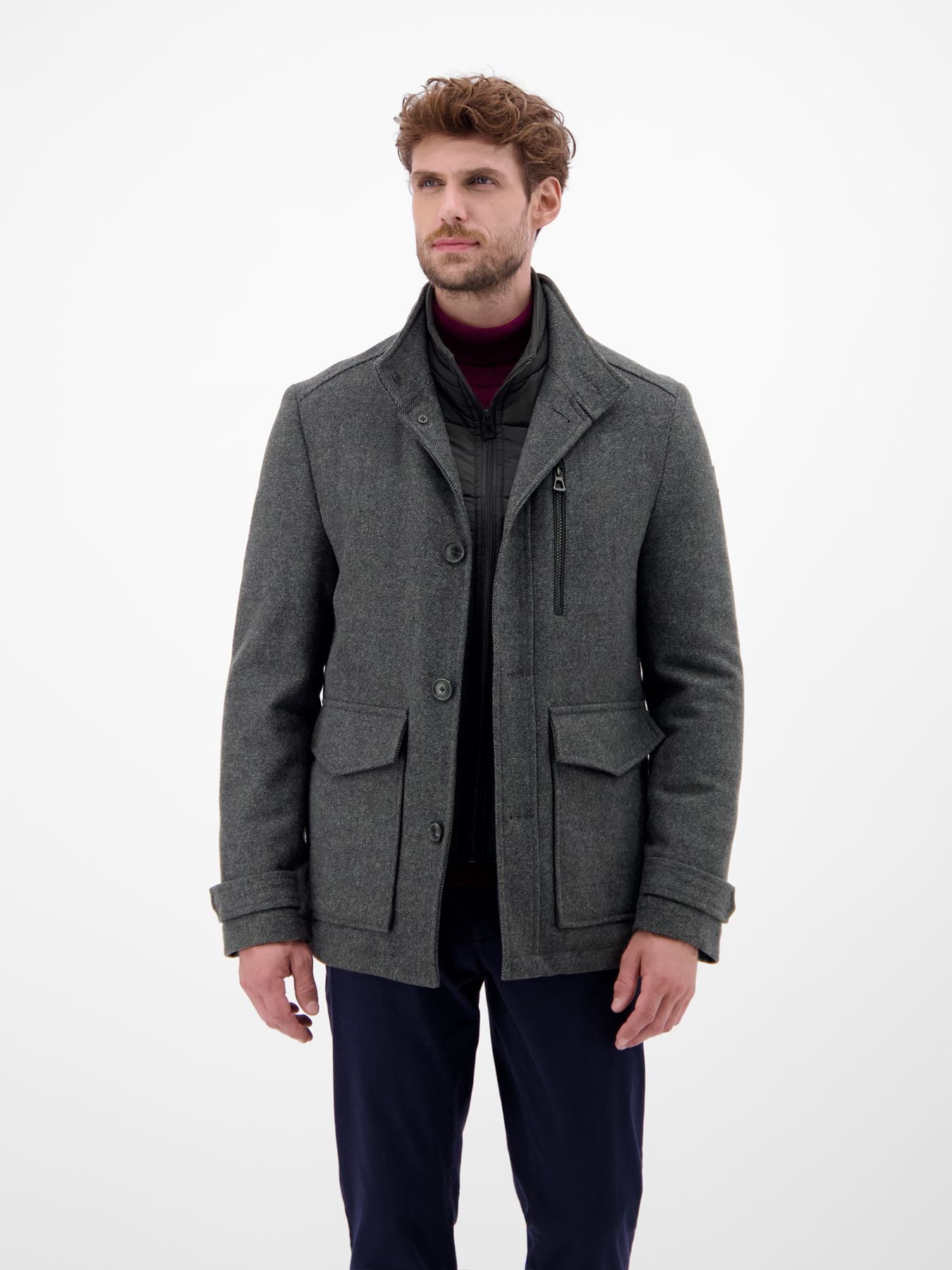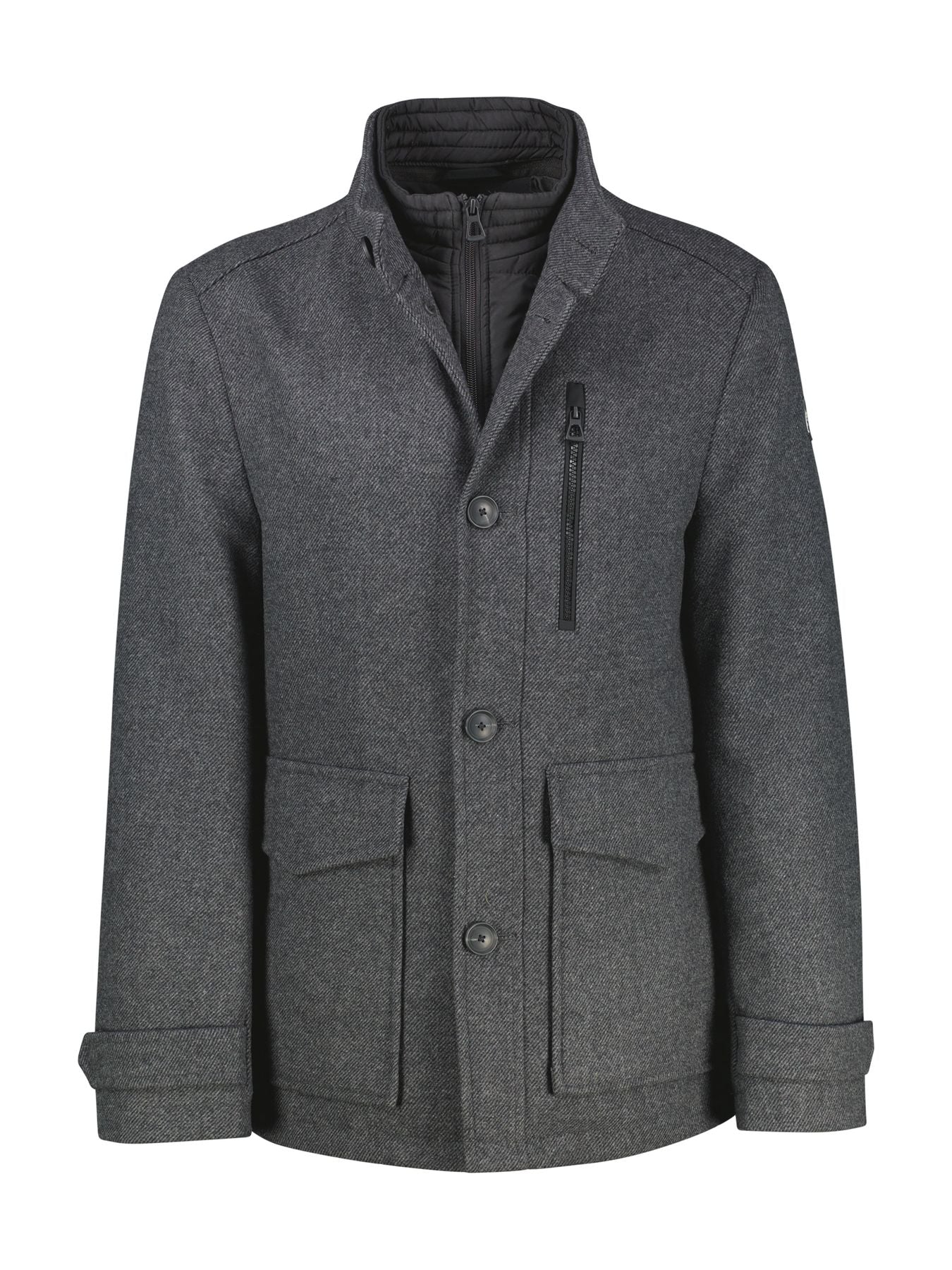Diese modische Herrenjacke von LERROS vereint zeitlose Eleganz mit praktischer Vielseitigkeit. Die edle Wolloptik verleiht ihr eine hochwertige Anmutung, während der herausnehmbare Westeneinsatz mit Rippkragen für zusätzliche Wärme sorgt, perfekt für wechselhafte Temperaturen. Ein stilvolles und praktisches Highlight ist die Brusttasche mit Reißverschluss. Ob im Business oder in der Freizeit, dieser Mantel ist ein idealer Begleiter für kühle Tage. Farbe