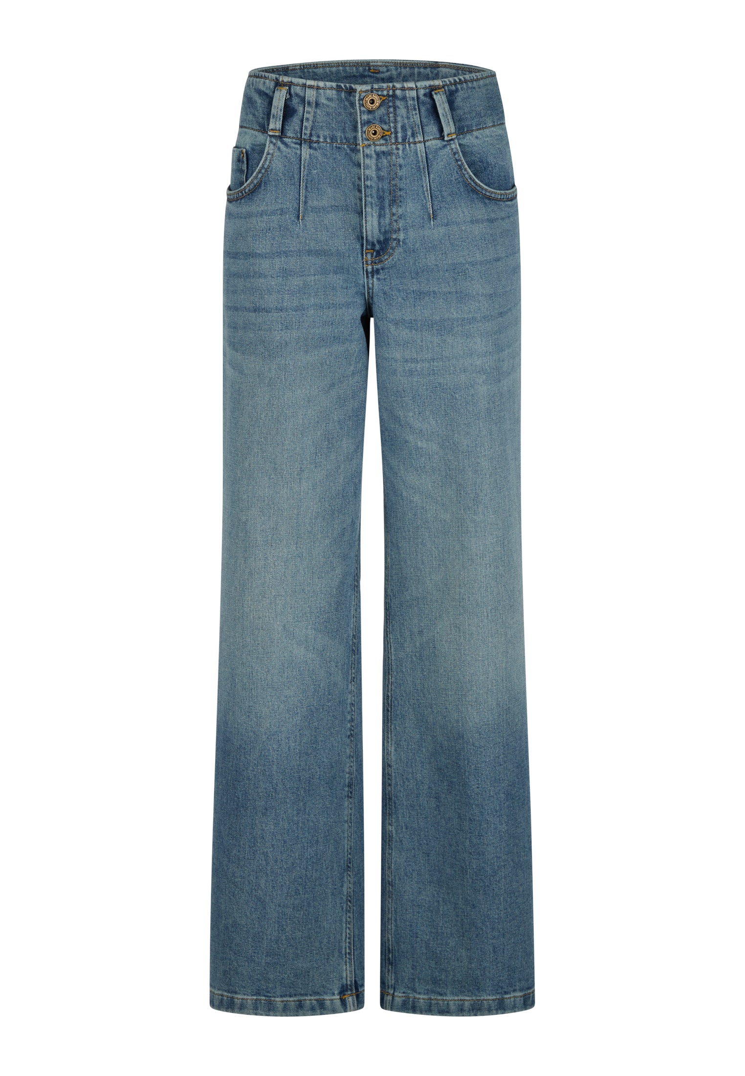 Erleben Sie den perfekten Mix aus Stil und Komfort mit unserer Marlenejeans aus Blue Denim mit Comfortstretch. Hergestellt aus einer Baumwollmischung mit Comfortstretchanteil bietet sie eine optimale Passform und Bewegungsfreiheit. Der High Waist Schnitt und das weite Bein verleihen Ihnen eine elegante Silhouette, während das authentische Blue Denim und die Wascheffekte für einen lässig-coolen Look sorgen. Mit praktischen Details wie dem 5-Pocket-Stil und den Gürtelschlaufen ist diese Jeans ein Must-Have für jede Garderobe.