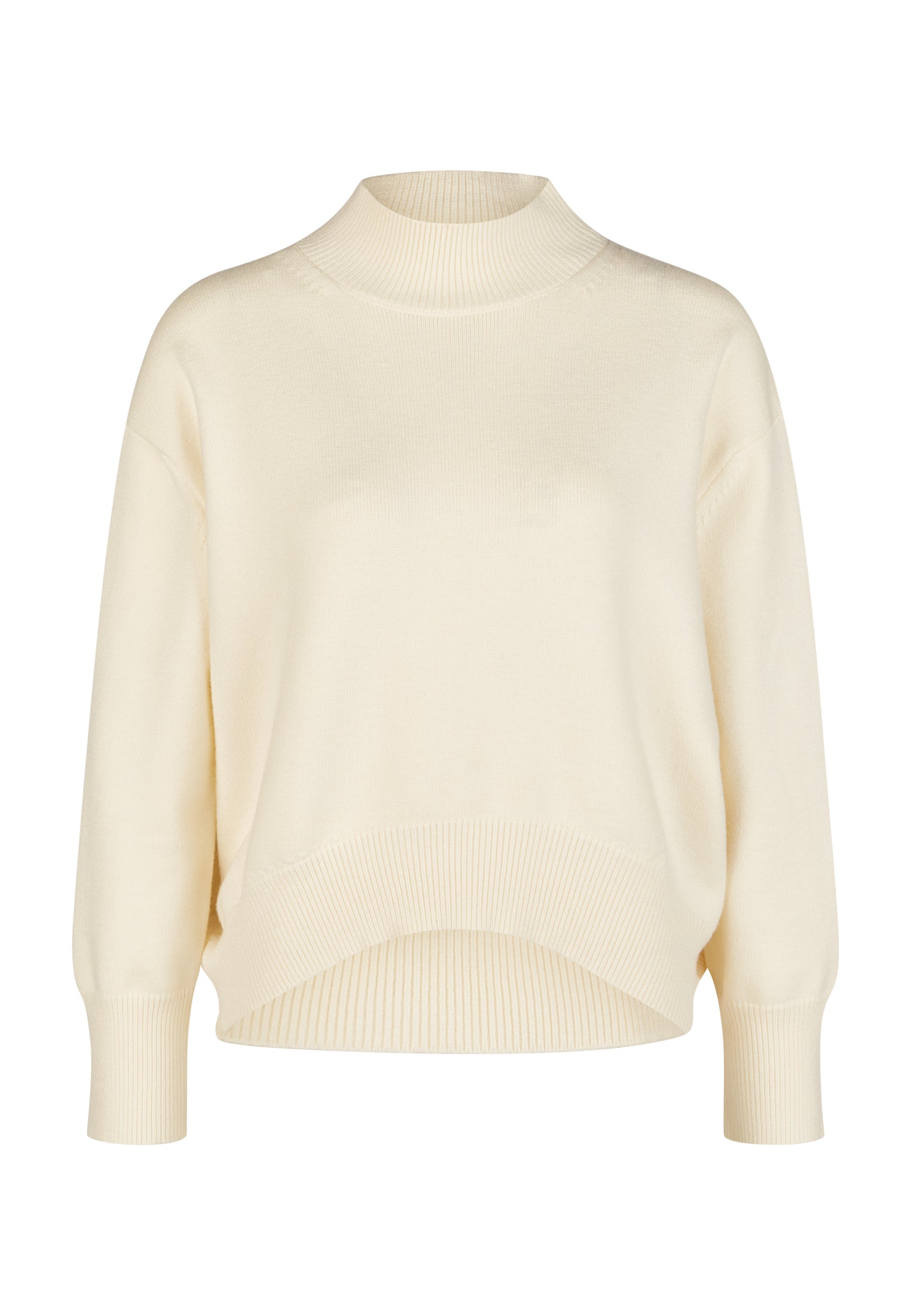 Dieser Pullover mit hohem Turtle-Neck ist ein Statement-Stück, das aus einer weichen Viskose-Mischung gefertigt wurde. Die lässige Weite und der asymmetrische Saum verleihen ihm eine moderne Note, während der hohe Turtle-Neck für zusätzliche Wärme sorgt. Mit langen Ärmeln und Rippenabschlüsse ist dieser Pullover ideal für ein stylisches Layering.