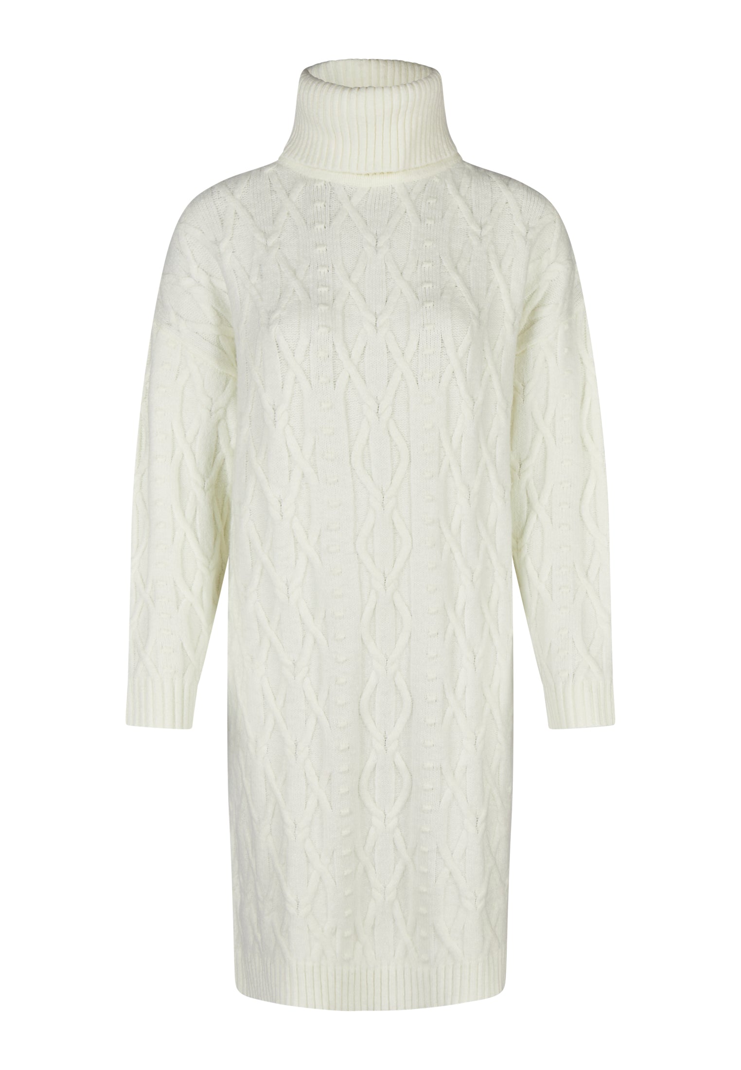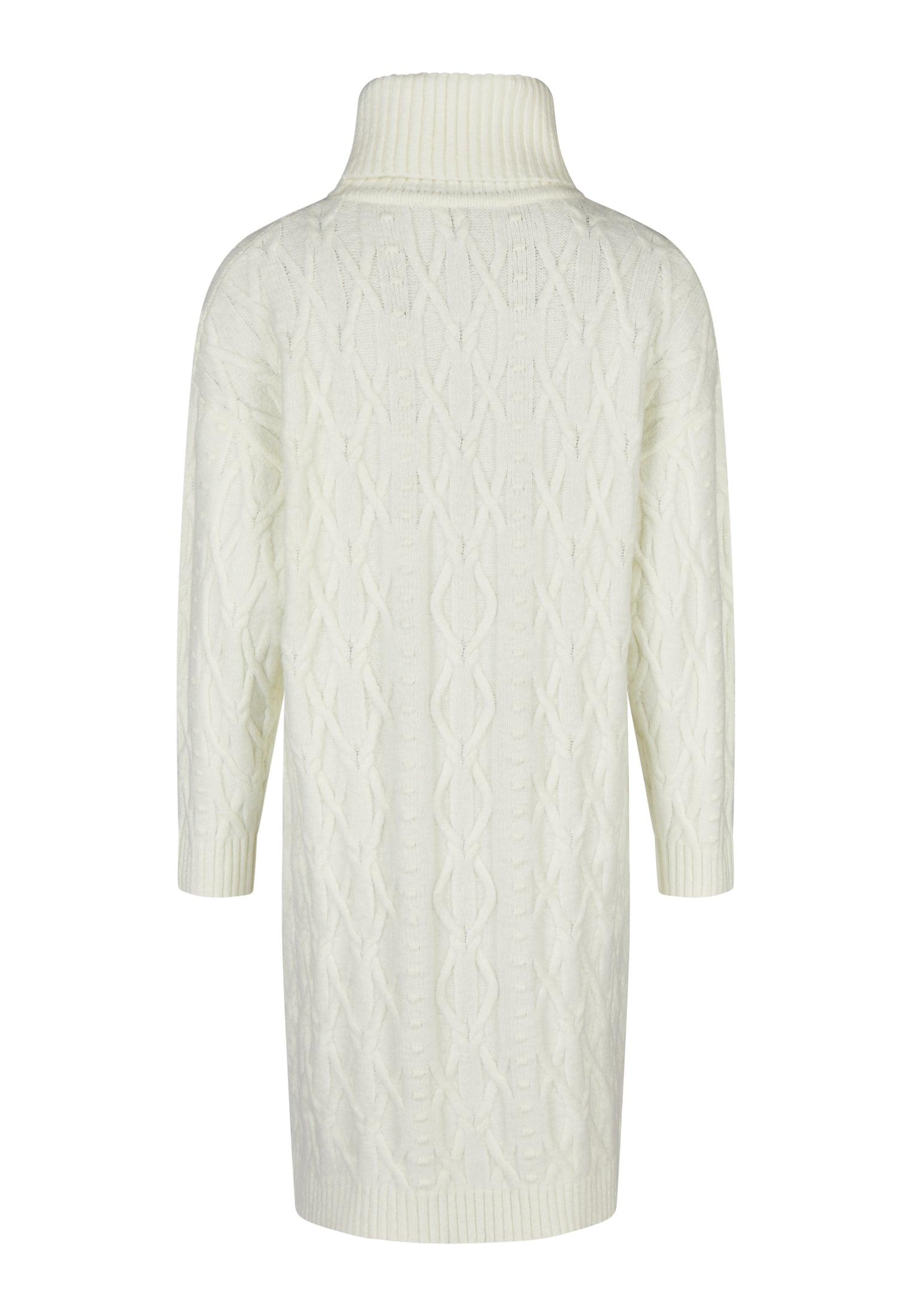 Kuschelig und schick durch den Winter. Dieses Strickkleid im Zopfmuster aus weichem Garn mit Cashmere-Anteil ist die perfekte Wahl für die kältere Jahreszeit. Der Turtleneck und die leicht überschnittenen Schultern bieten eine moderne Silhouette, während das Zopfmuster und die Rippenabschlüsse klassische Strickelemente neu interpretieren. Ein wärmender und stilvoller Begleiter für jeden Tag.