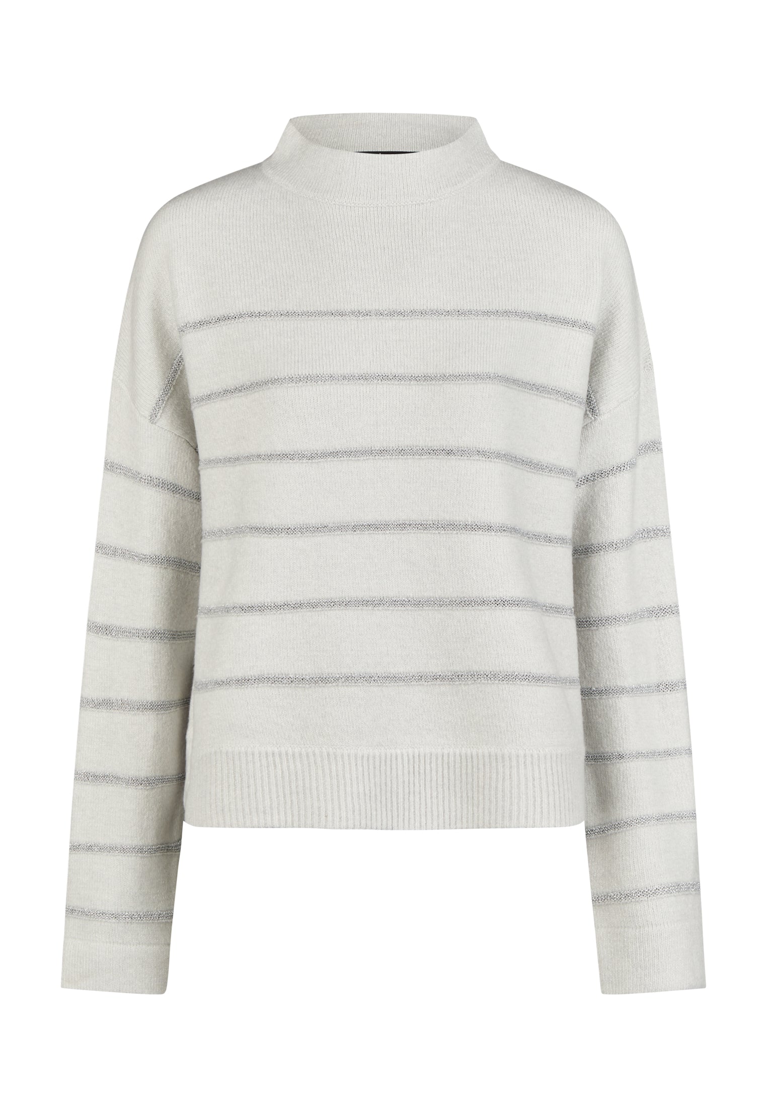 Der Turtle-Pullover mit Lurex-Ringeln setzt neue Maßstäbe in Sachen Strickmode. Die Kombination aus weichem, leicht flauschigem Garn und 3-D Ringeln aus Lurexgarn erzeugt einen einzigartigen Look. Mit seiner boxy Passform und langen Ärmeln bietet dieser Pullover eine komfortable Silhouette, ergänzt durch leicht überschnittene Schultern und stilvolle Rippenabschlüsse.
