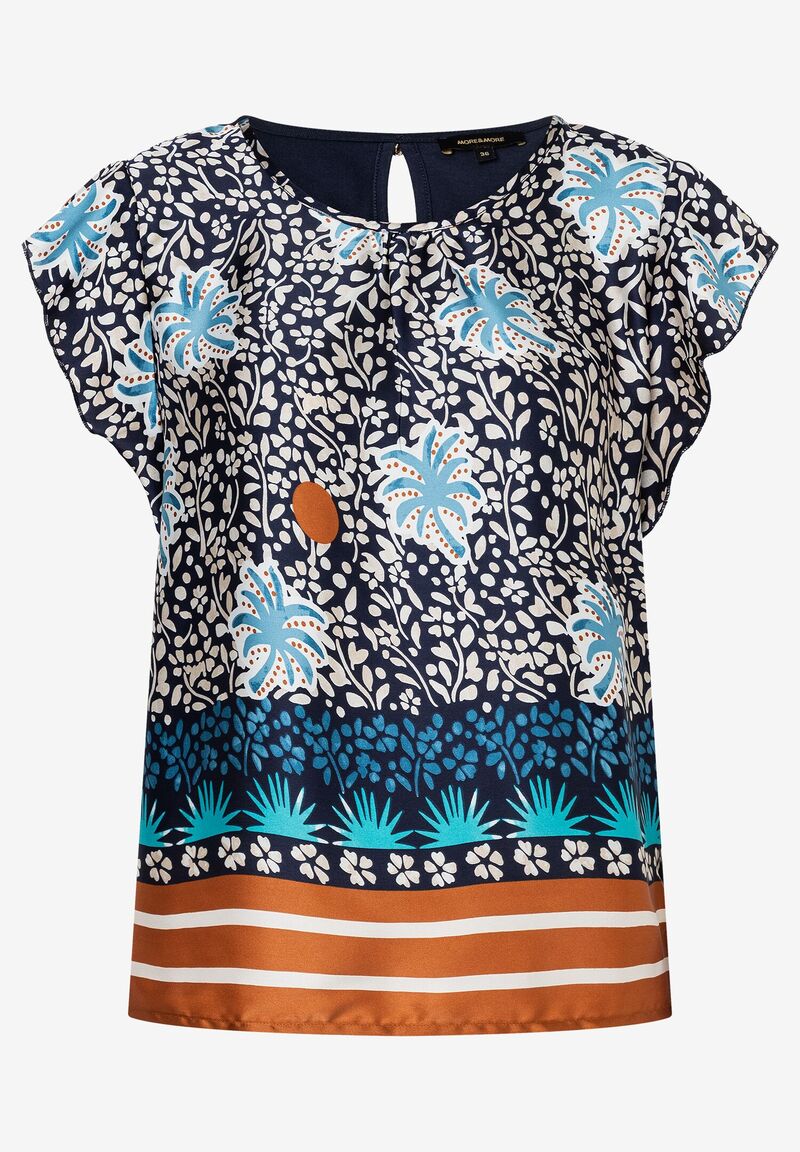 Das moderne Printshirt von MORE & MORE mit edel-glänzender Satinfront bietet die perfekte Mischung aus Bluse und T-Shirt und lässt sich vielseitig kombinieren.