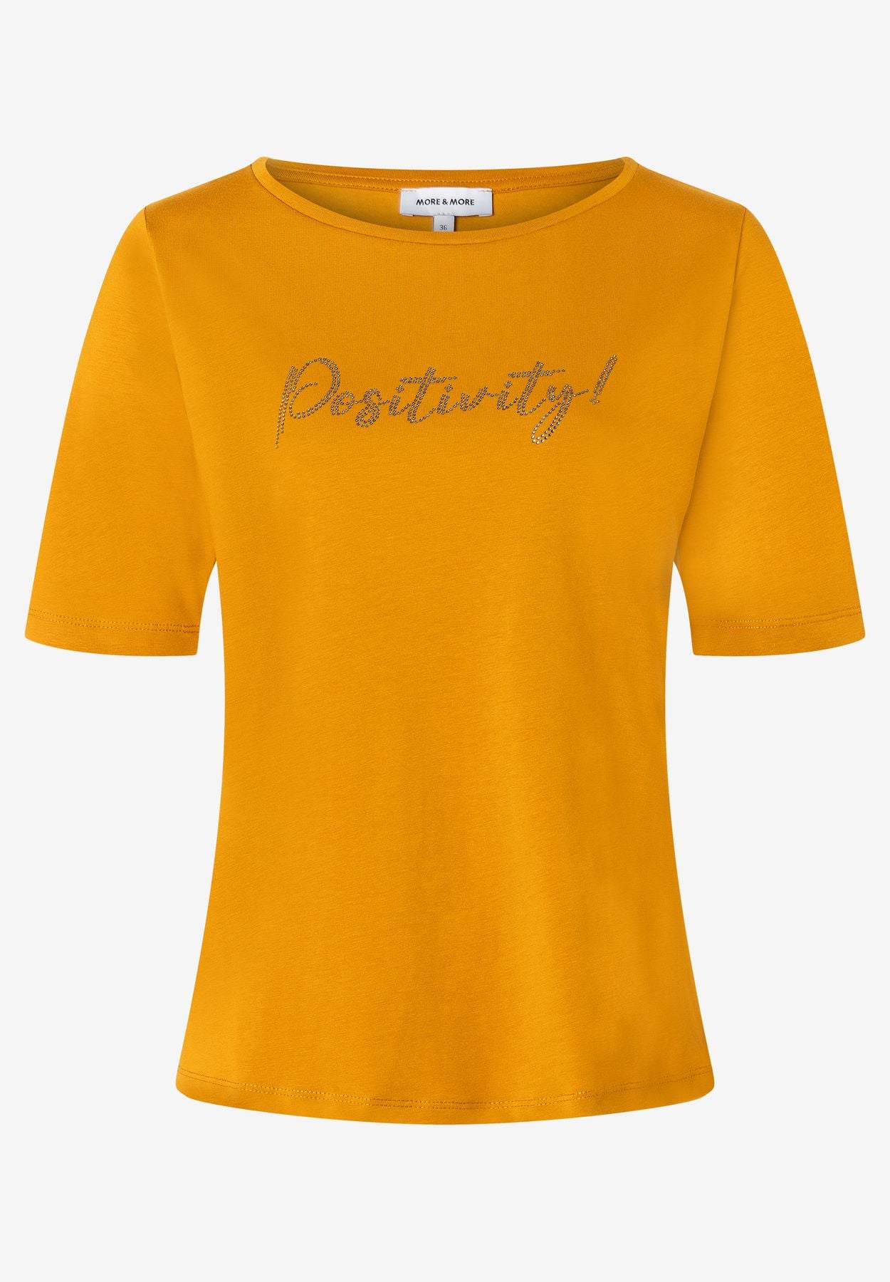 Das moderne Halbarm-Shirt von MORE & MORE präsentiert sich mit dekorativem Schriftzug aus glitzernden Strasssteinchen auf der Front und bietet unzählige Stylingmöglichkeiten. Farbe