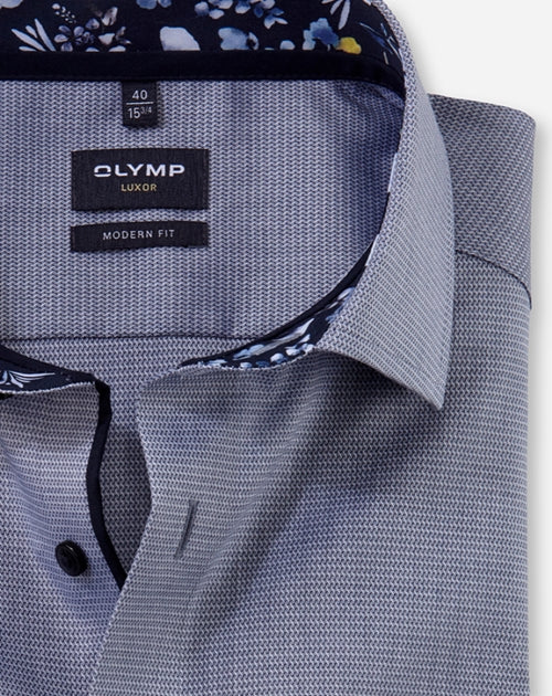Das OLYMP Luxor modern fit bleibt den ganzen Tag in Bestform. Das knitter- und bügelfreie Businesshemd in feiner einfarbiger Webstruktur aus 100 Prozent Baumwolle sorgt für die modische Performance im Office. Der angesagte Global Kent mit Kontrast-Innenkragen vollendet die sportive Linie. Atmungsaktiv und hautsympathisch.
