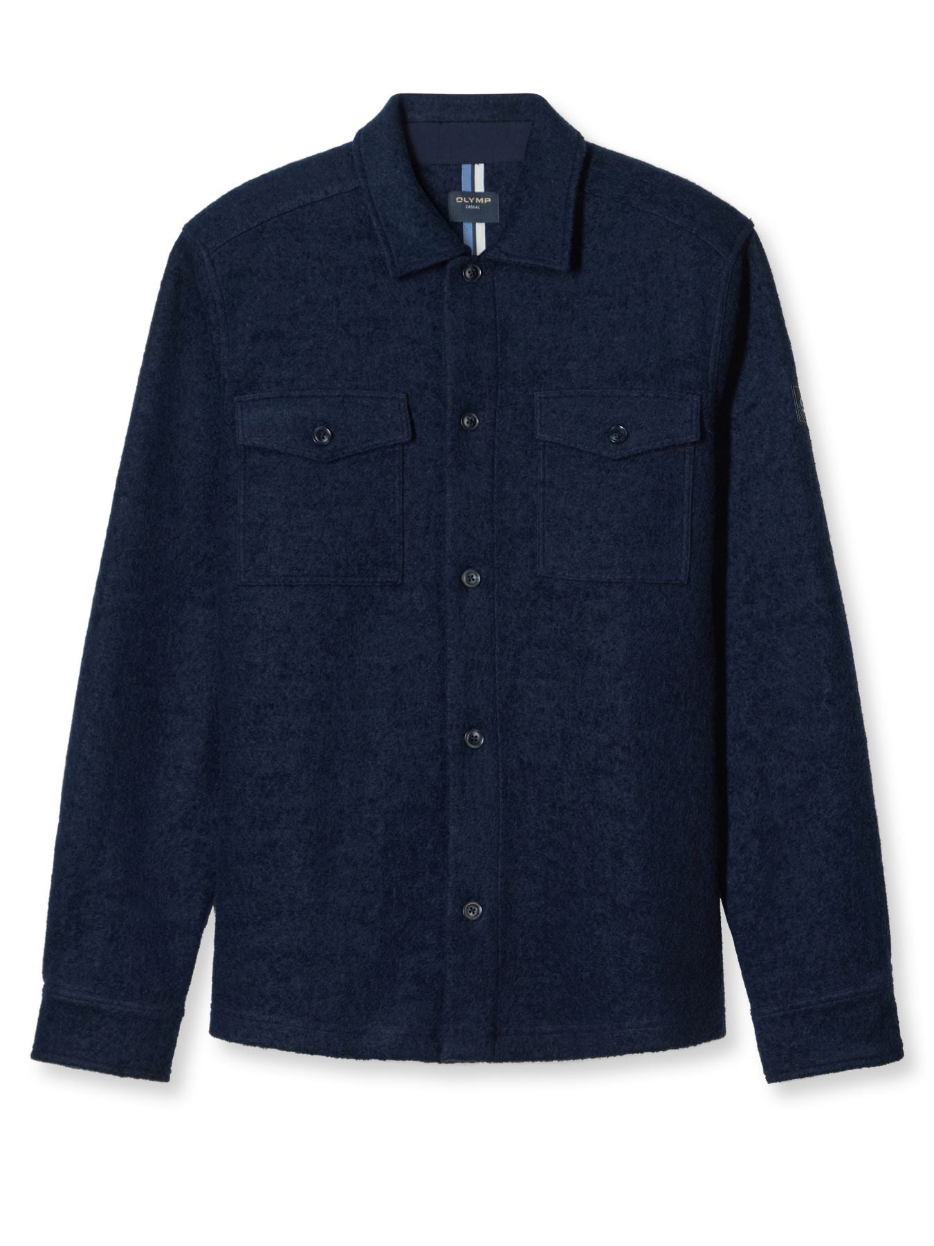 Dieses OLYMP Overshirt besticht durch seine tolle Textur: Ein spezielles Waschverfahren verleiht dem hochwertigen Boiled-Wool-Blend seine weich gewalkte, wärmende Qualität. So entsteht ein idealer Herbstbegleiter mit Gemütlichkeitsfaktor, Funktionalität und zugleich coolem Look. Mit Nylon-Patch, Knopfleiste, Hemdkragen und Brusttaschen. In Marine.