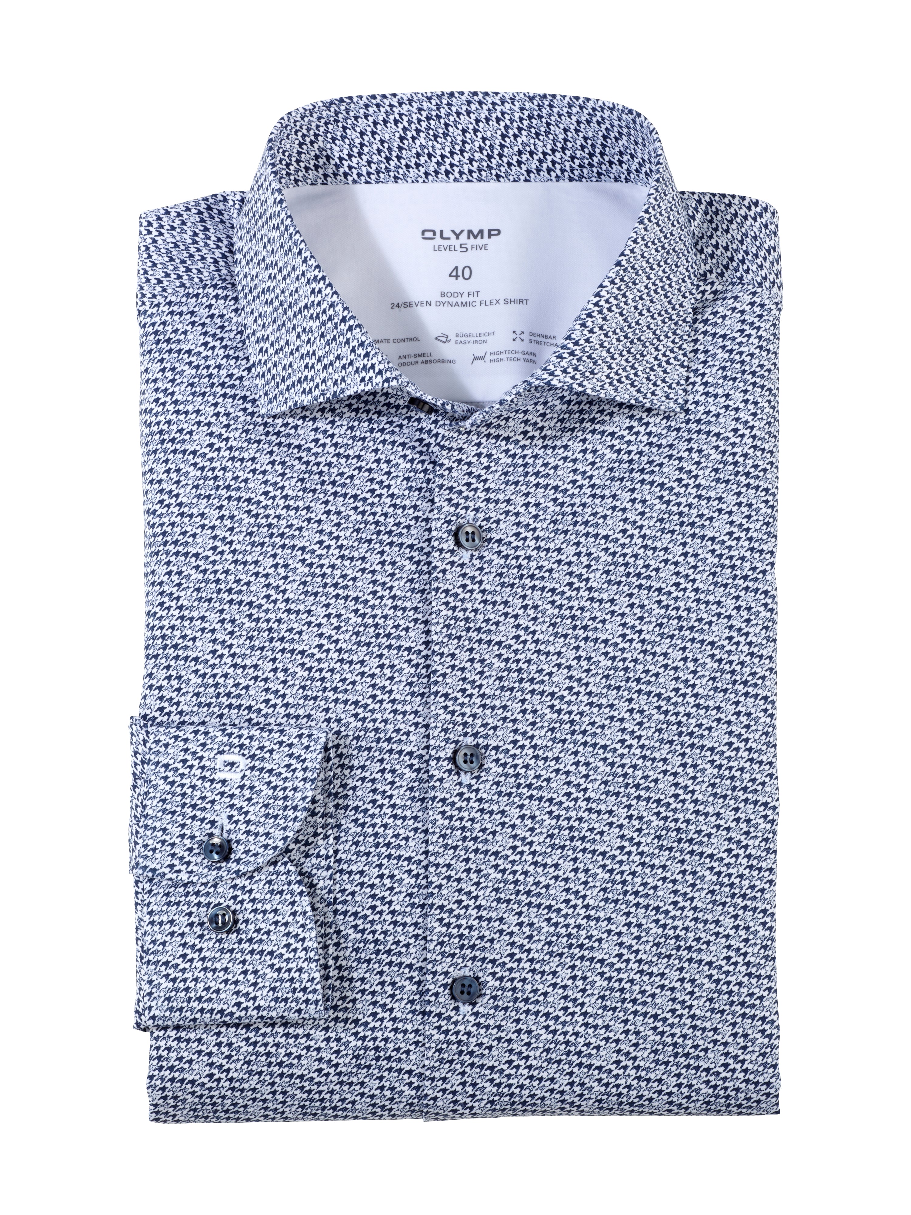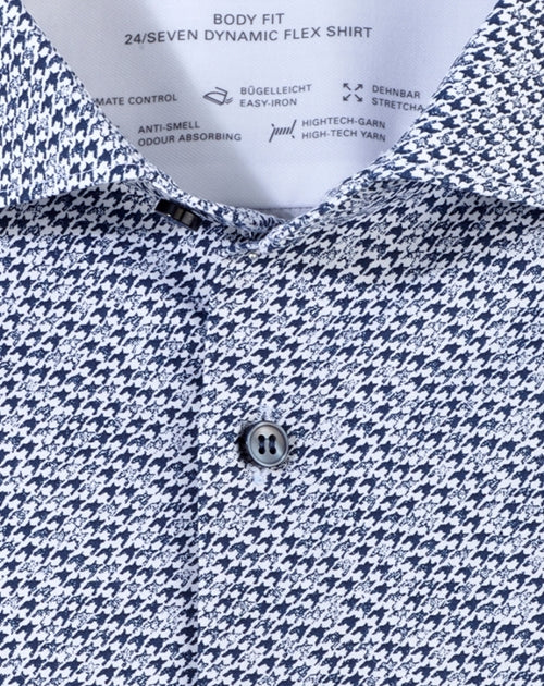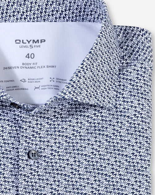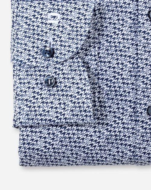 Individueller Business-Style plus einzigartiges Feeling: Dieses OLYMP Level Five mit Hahnentritt-Print auf feiner Dobby-Qualität überzeugt auf ganzer Linie. Neben der coolen Optik besticht das innovative, leichte Hightech-Garn, mit regulierendem Climate-Control-Effekt sowie atmungsaktiven und dehnbaren Features. Mit dunklen Knöpfen und Modern Kent.
