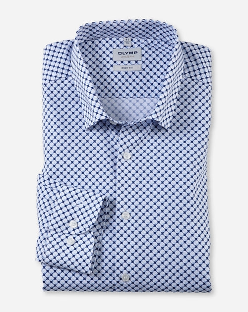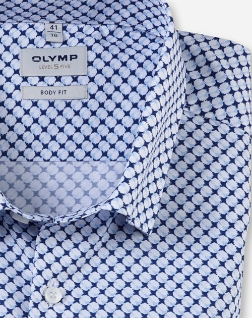 Kontraststark und individuell zum Sakko – das körperbetonte OLYMP Level Five setzt die Benchmark für den modischen Business-Look. Der glatte und kühl wirkende Baumwoll-Popeline mit dynamischen Elastolefin-Fasern ist hautsympathisch, atmungsaktiv und knitterfrei. Perfekt für sommerliche Temperaturen.
