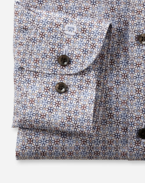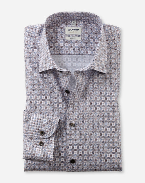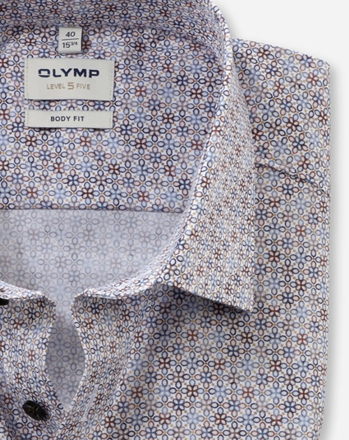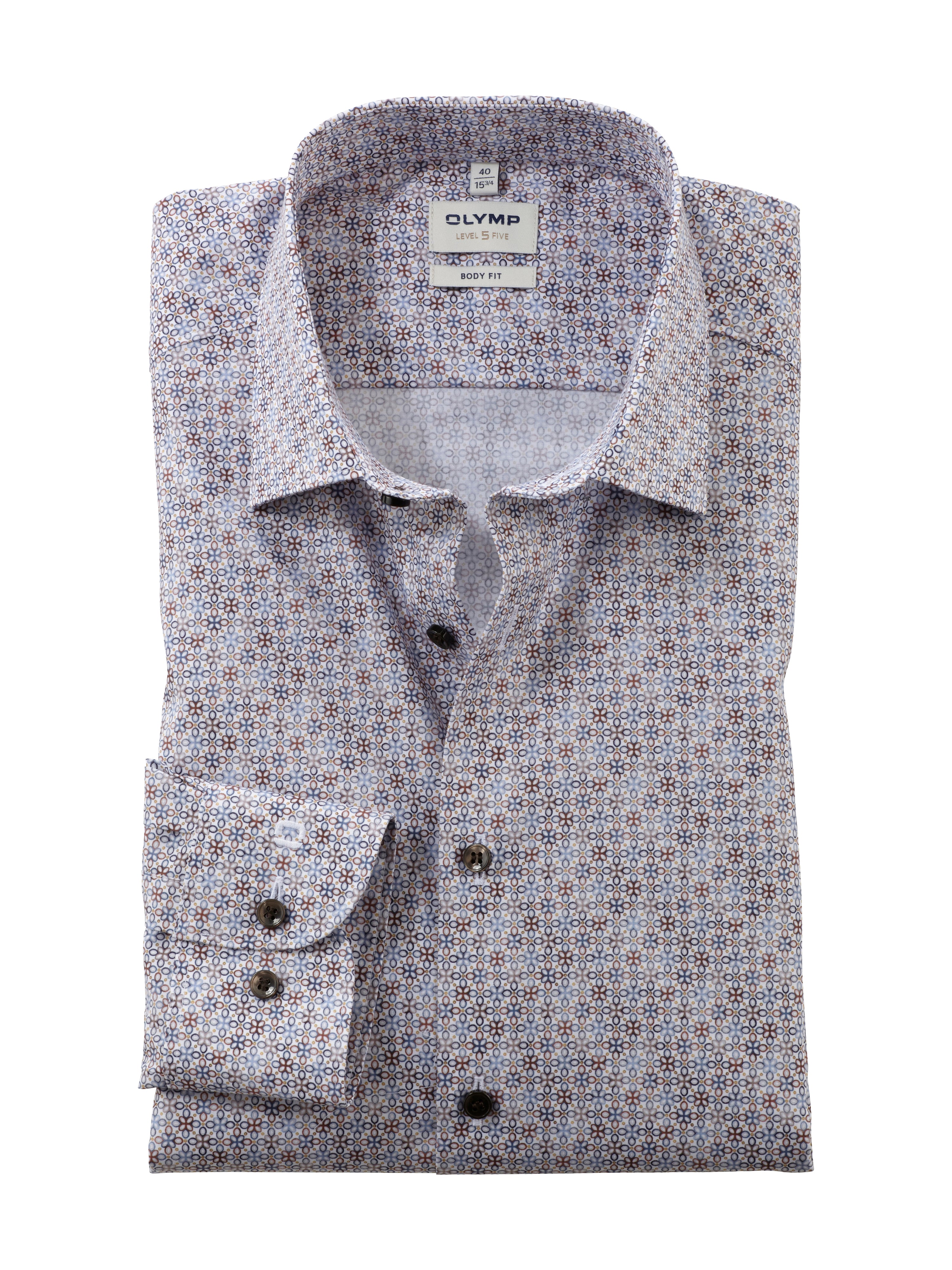 Wer im Business-Kontext gerne durch Individualität punktet, liegt mit diesem OLYMP Level Five genau richtig. Der pixelscharfe Digitalprint zeigt ein stilvolles florales Motiv, arrangiert in modischer Farbkombination. Für besten Sitz und Tragekomfort trifft der körpernahe Body Fit auf leicht elastischen Comfort Stretch. Fein, glatt und bügelleicht. Farbe