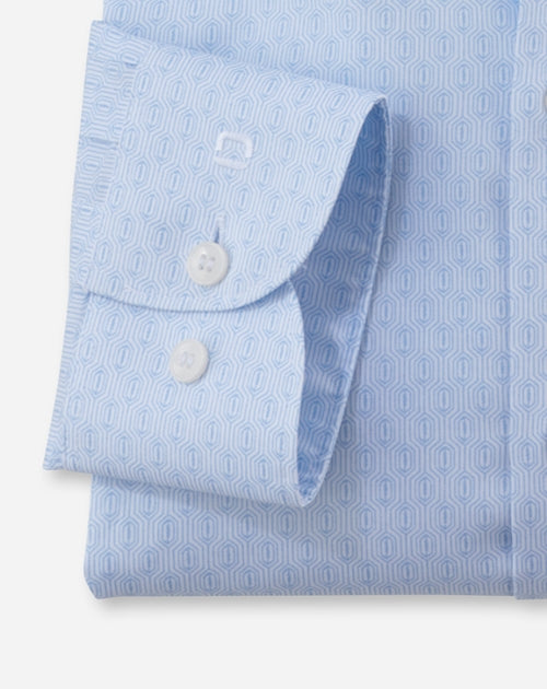 Dezent, mit tonalem Grafik-Print präsentiert sich das Level Five body fit Businesshemd. Die feinen Garnausspinnungen mit Stretch-Anteil unterstreichen die körperbetonte Linienführung im perfekten Zusammenspiel mit dem smarten New York Kent. Der leicht gerundete Saum setzt den lässigen Akzent. Hautsympathisch, besonders bügelleicht.
