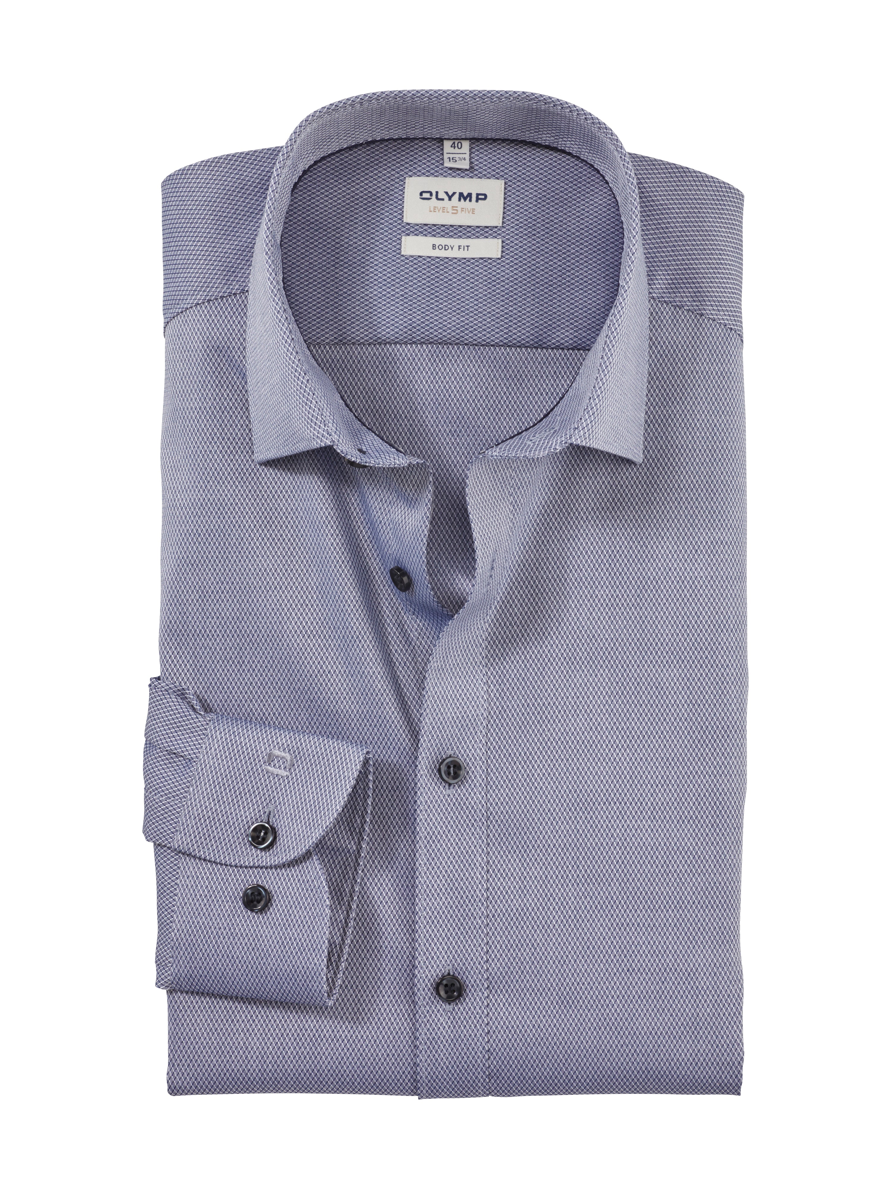 Feine Faux-Uni-Struktur und intensive Farbwirkung – dieses einfarbige OLYMP Level Five Businesshemd aus Baumwolle und Elastolefin-Anteil sorgt für sportive Bestform. Der Comfort Stretch ist atmungsaktiv, dehnbar, formbeständig und besonders bügelleicht. Smarter New York Kent, souveränes Marine.