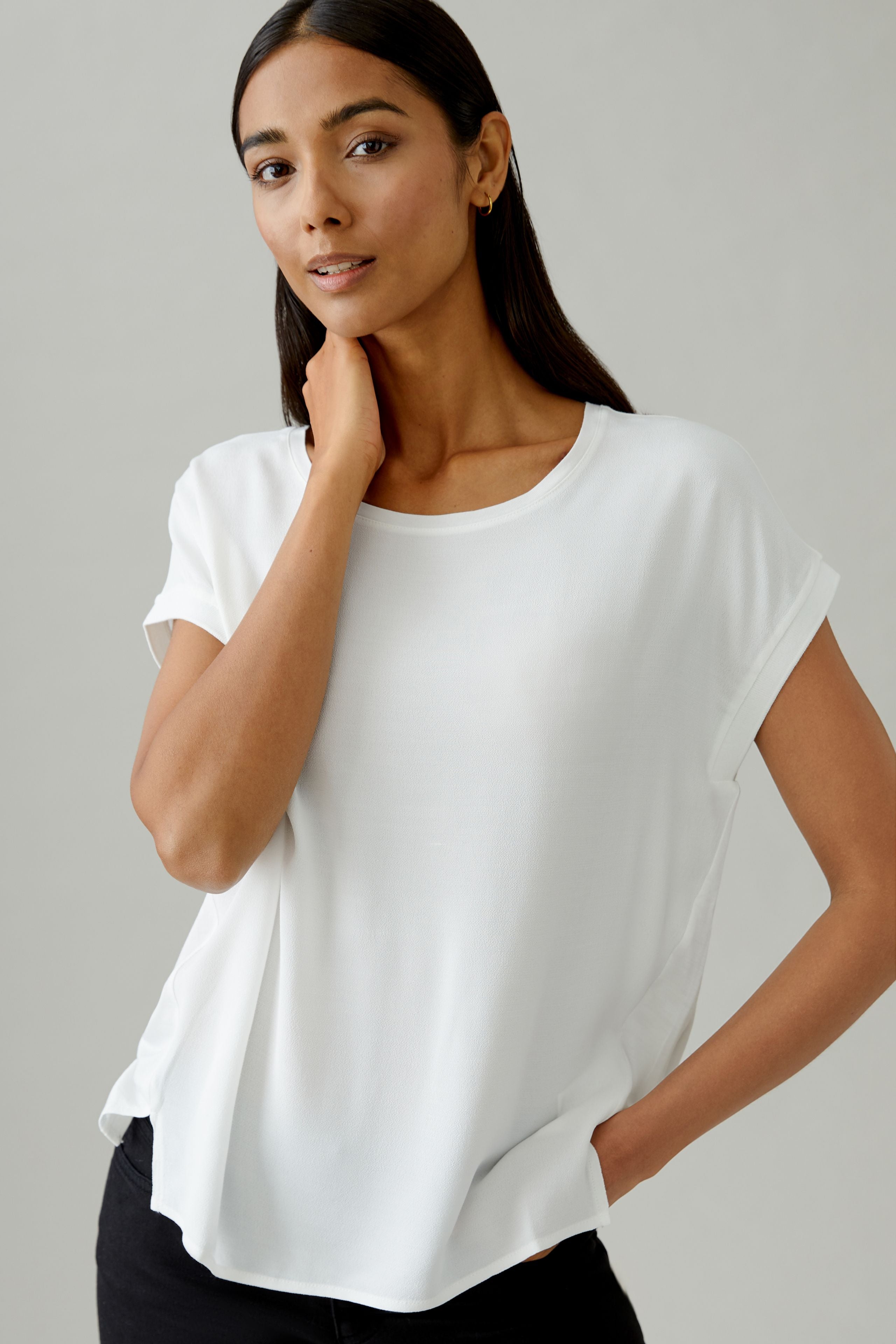 Vorderteil aus gewebter Viskose, sehr figurschmeichelnd, Rückteil aus komfortablem Viskosejersey