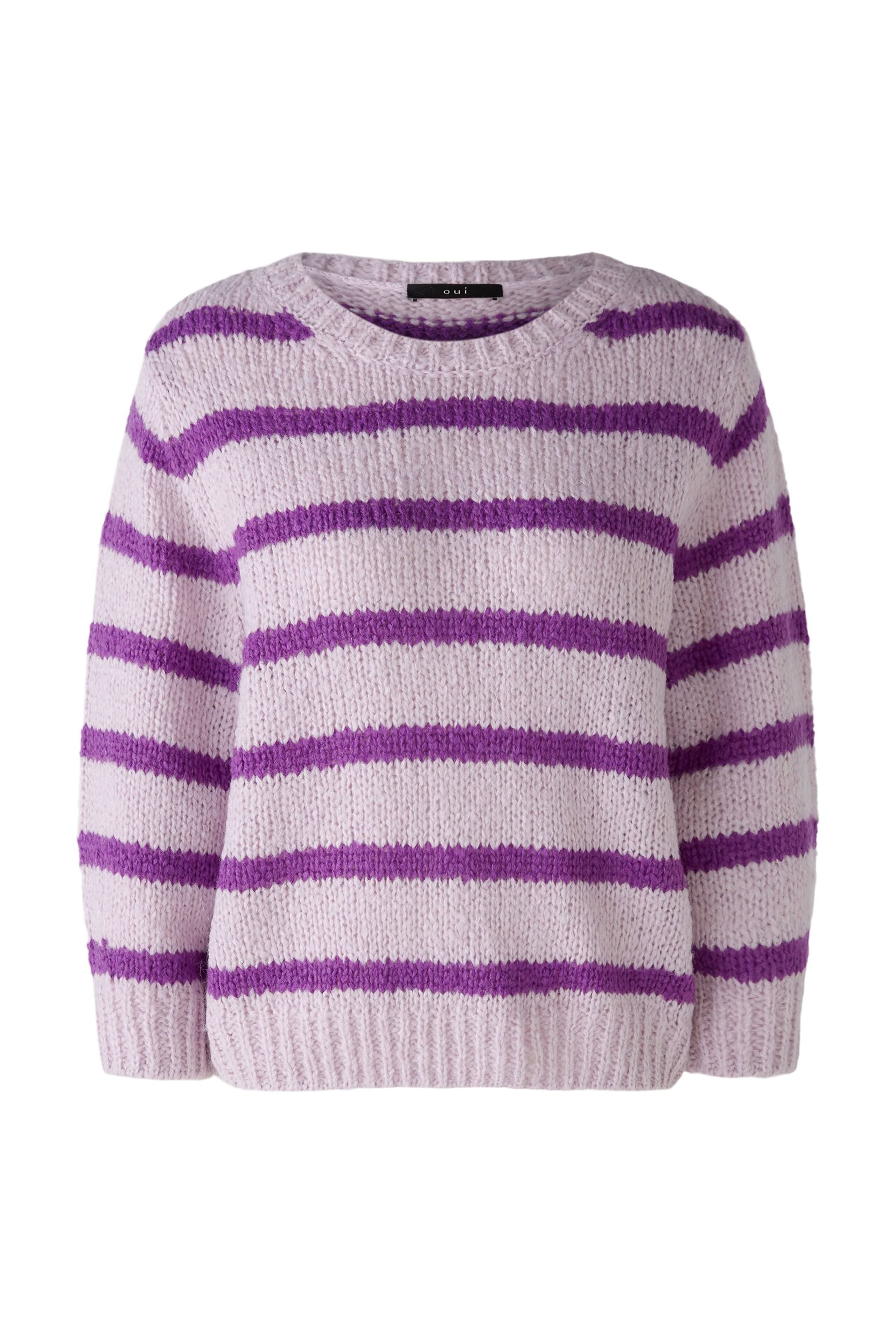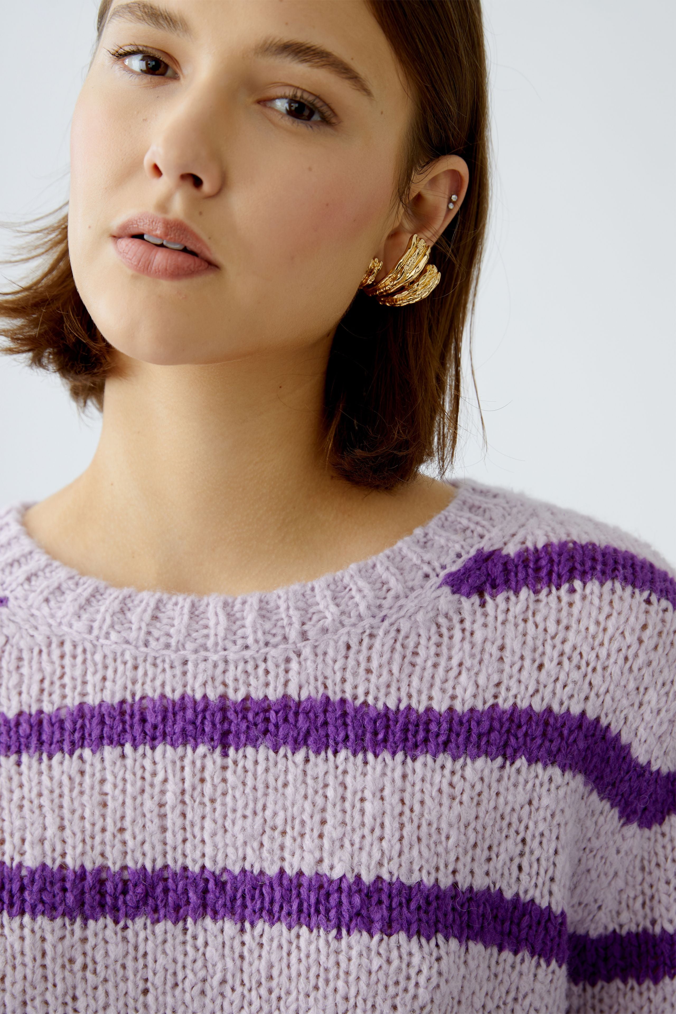 Weiche Garnmischung mit Wolle und Mohair glatt in Streifen gestrickt