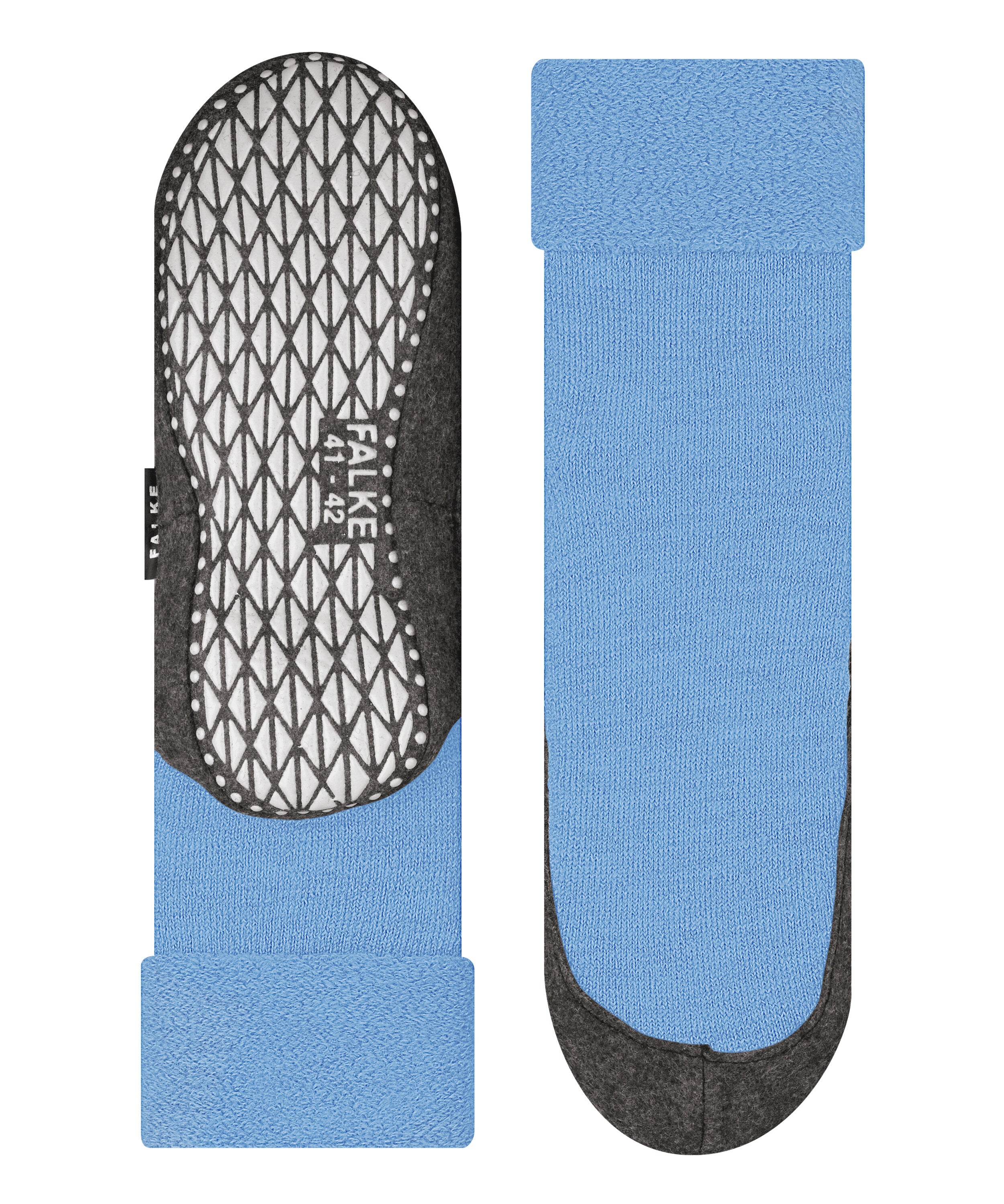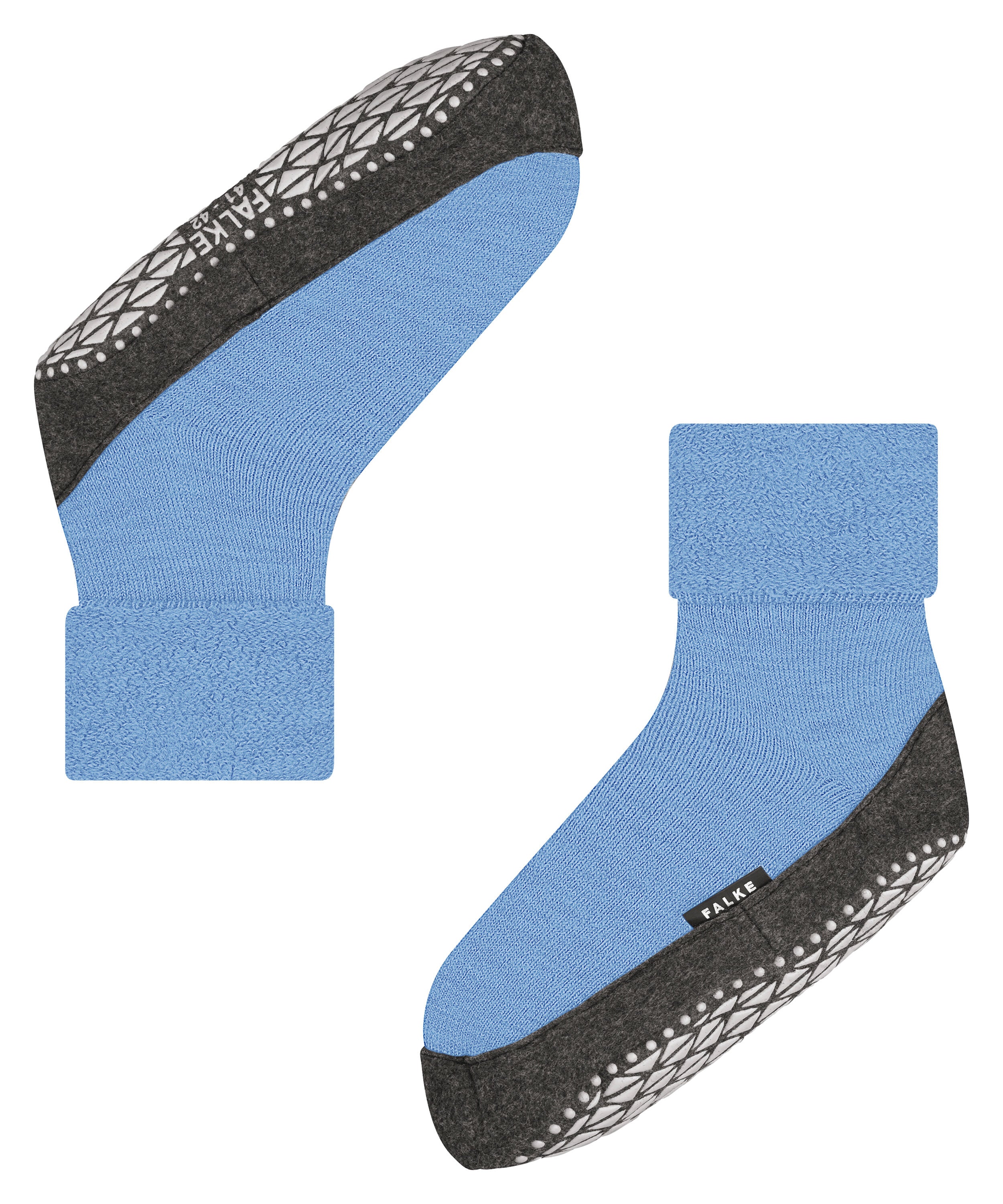 Hausschuh aus feiner, weicher Merinowolle mit rutschhemmendem Noppendruck auf der Sohle. Ein Elastanbund im Fesselbereich und ein Umschlag sorgen für eine optimale Passform und verhindern das Rutschen des Schafts. Der Innenplüsch hält den Fuß wohlig-warm.