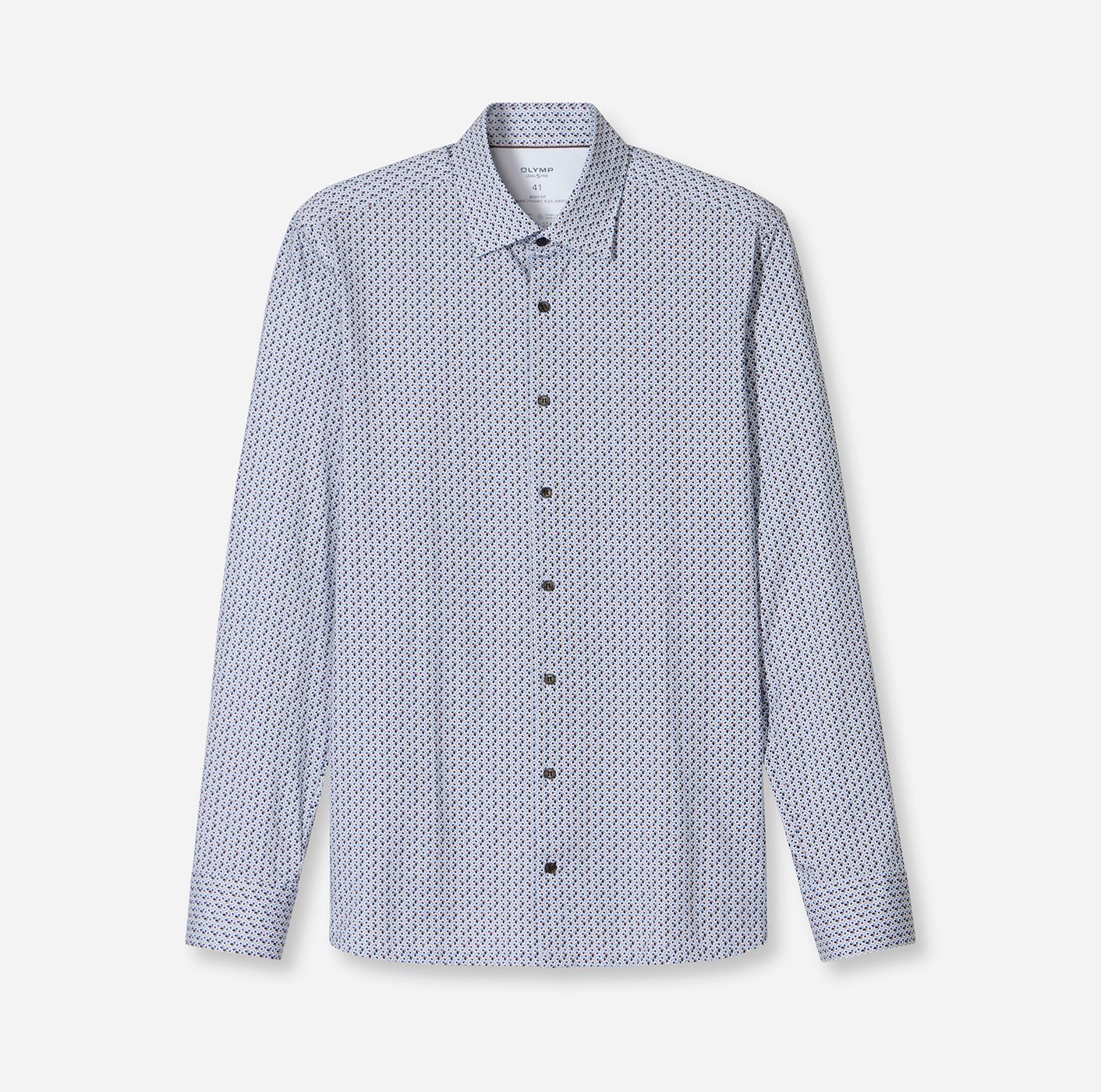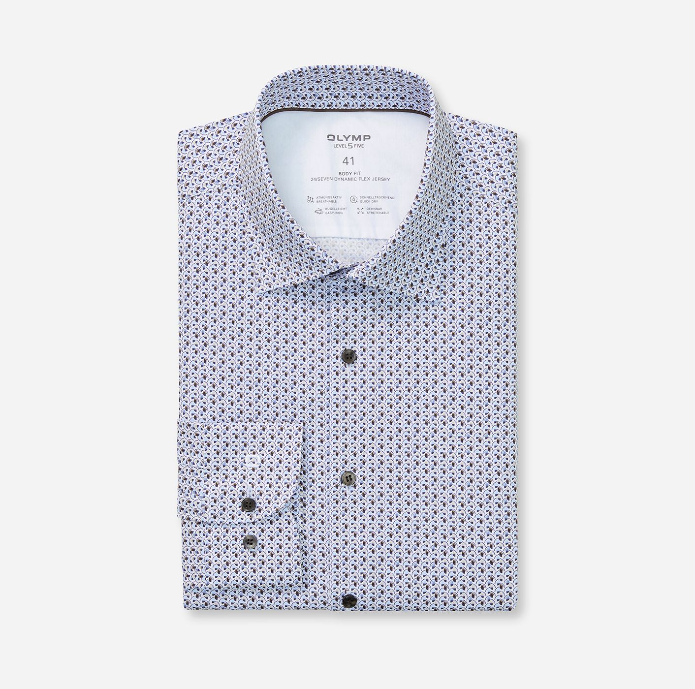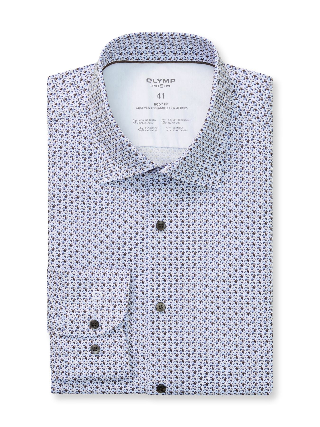 Smarte Digital-Prints, angenehme Texturen und körperbetonte Dynamik sind das zeitgemäße Update für die junge Business-Garderobe. Das OLYMP Level Five Jersey mit softem New York Kent wurde aus Baumwolle-Elasthan-Garnen gefertigt. Die Benefits: Es ist atmungsaktiv, hautsympathisch, elastisch, bügelleicht und schnelltrocknend. Weiß, hohe Blickdichte.
