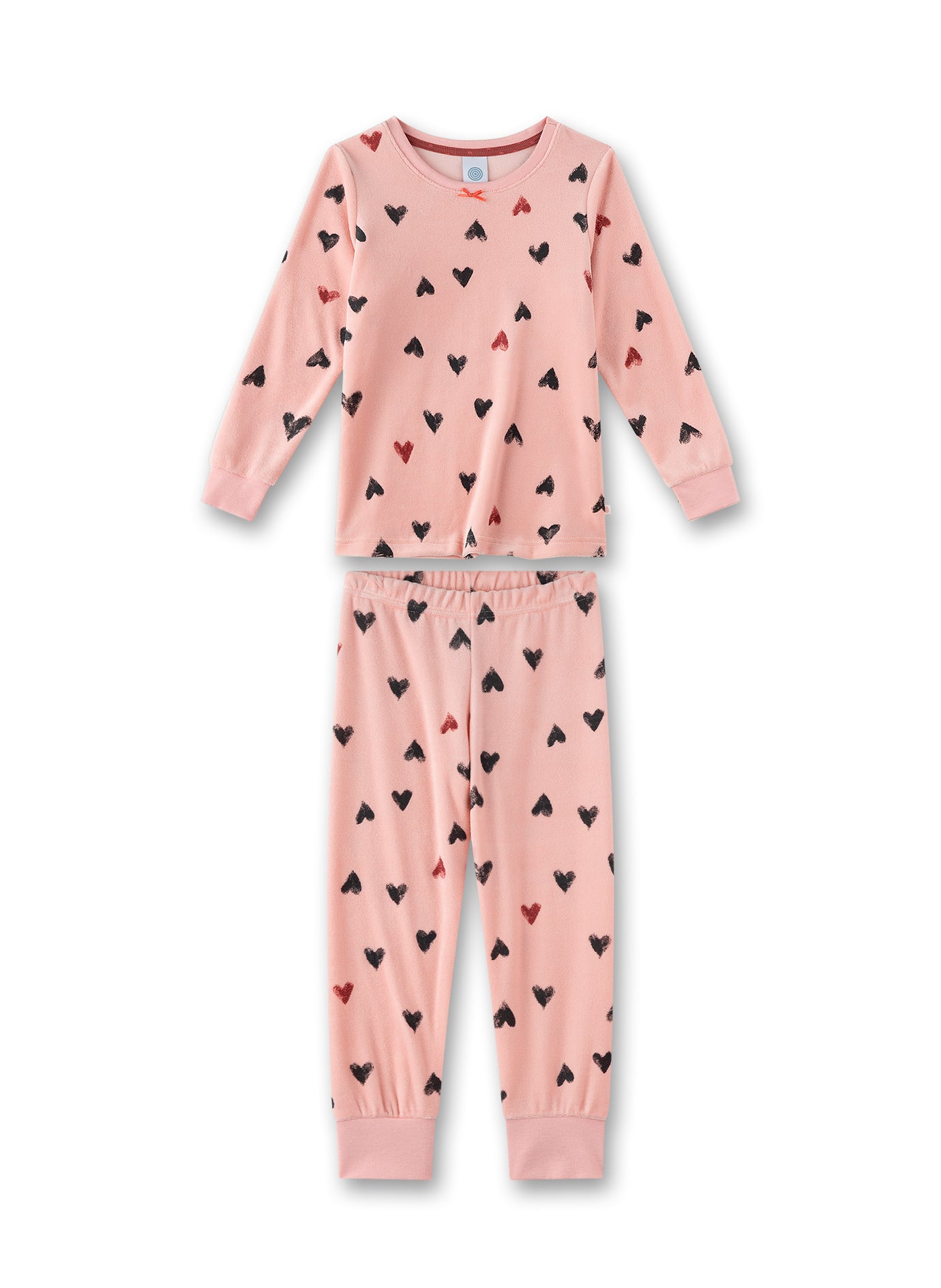 Rosa kuscheliger Nicki-Schlafanzug von Sanetta mit einem zeitlosen Herzchen-Allover.
