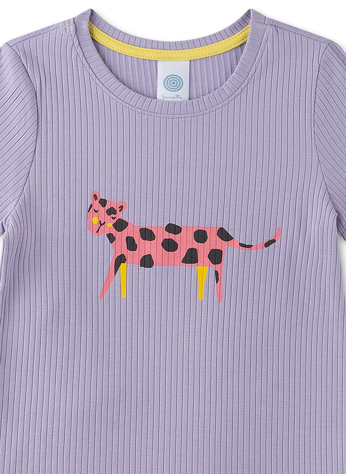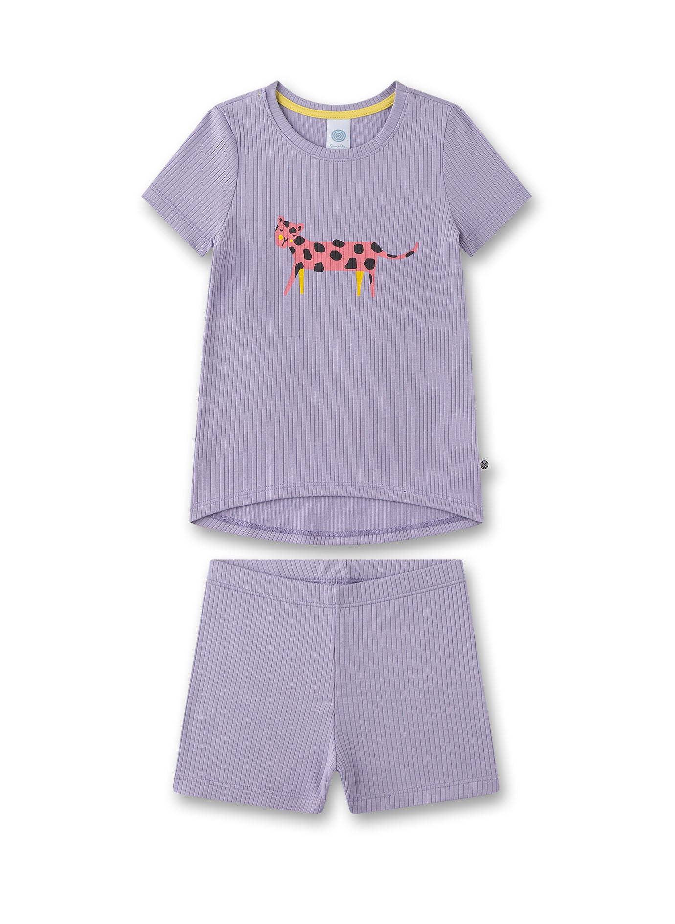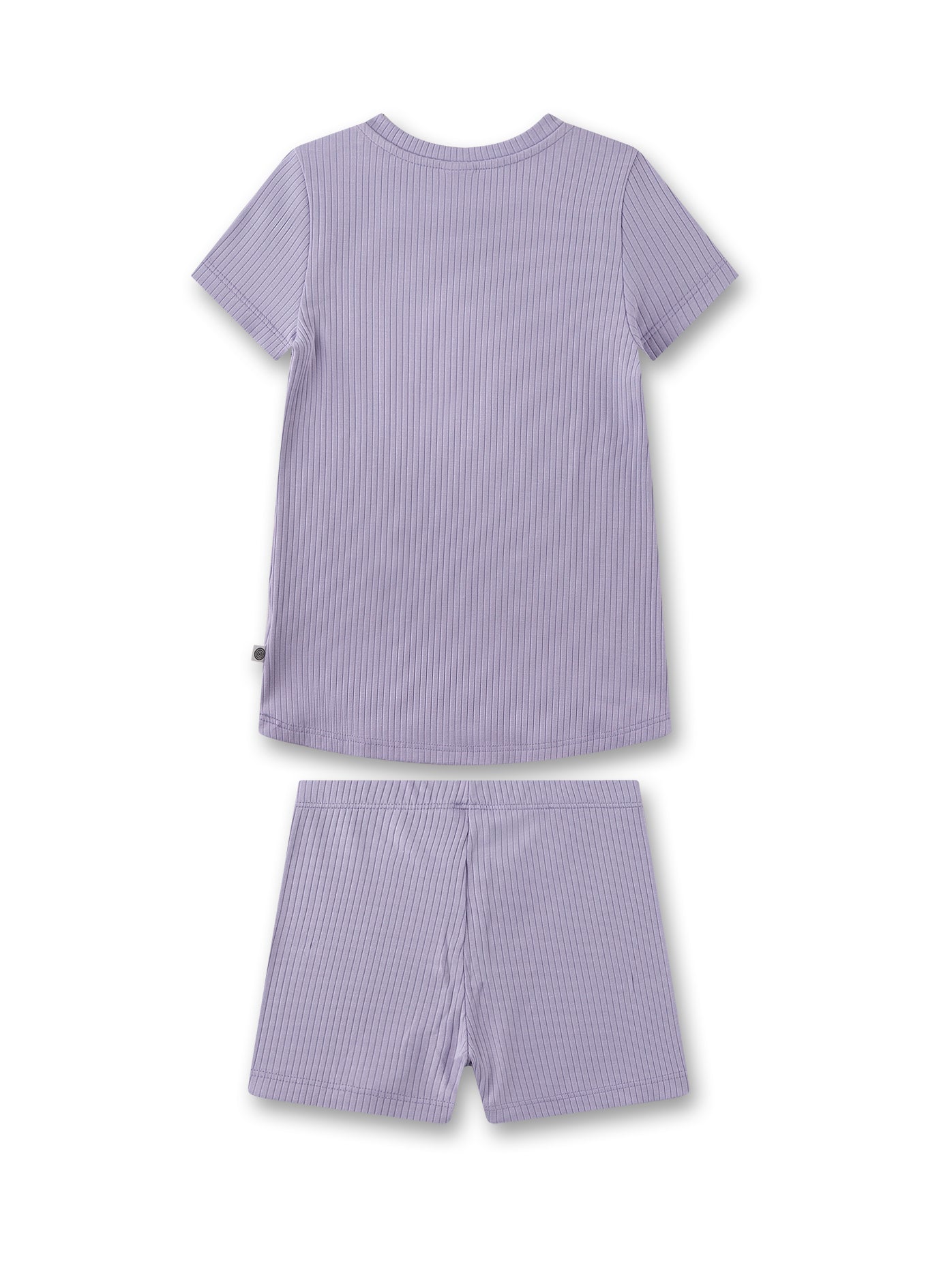 Trendiger, kurzer Mädchen Schlafanzug von Sanetta in Lila in einer modischen Rippware.