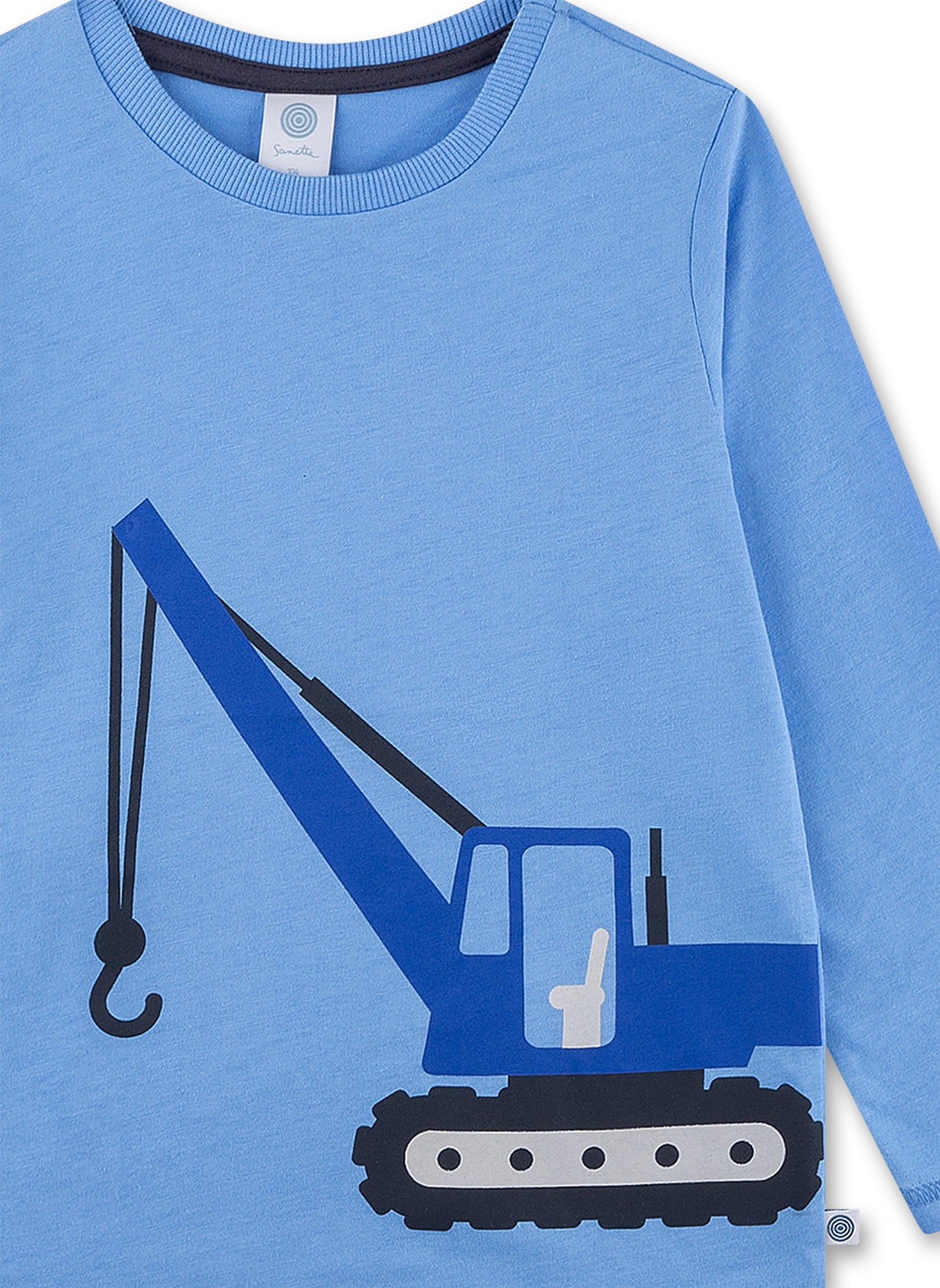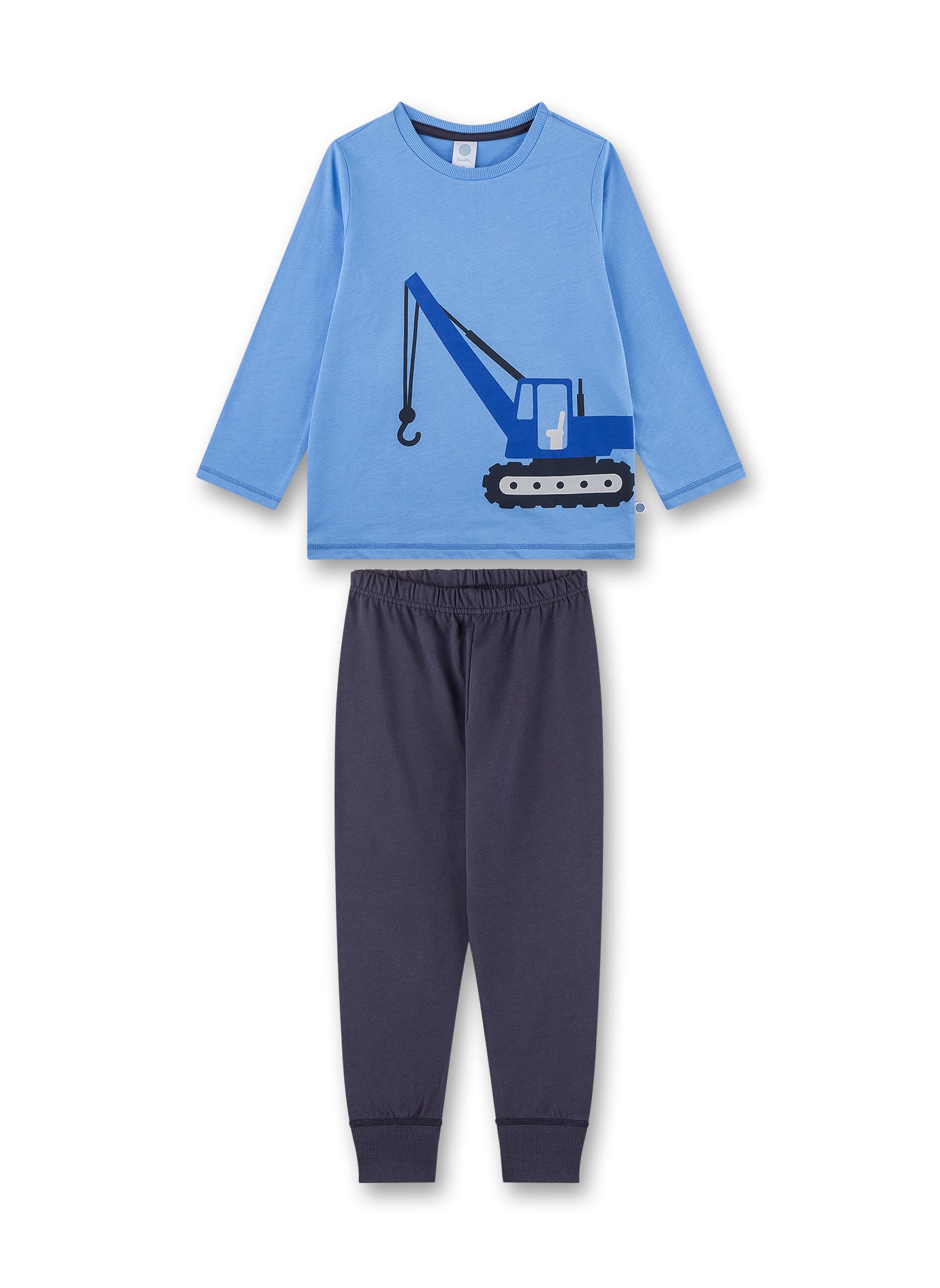 Grandioser langer Jungen-Schlafanzug für alle Bagger-Fans in einem wunderschönen Blauton mit einem großen Bagger-Print auf dem Schlaf-Oberteil von Sanetta.