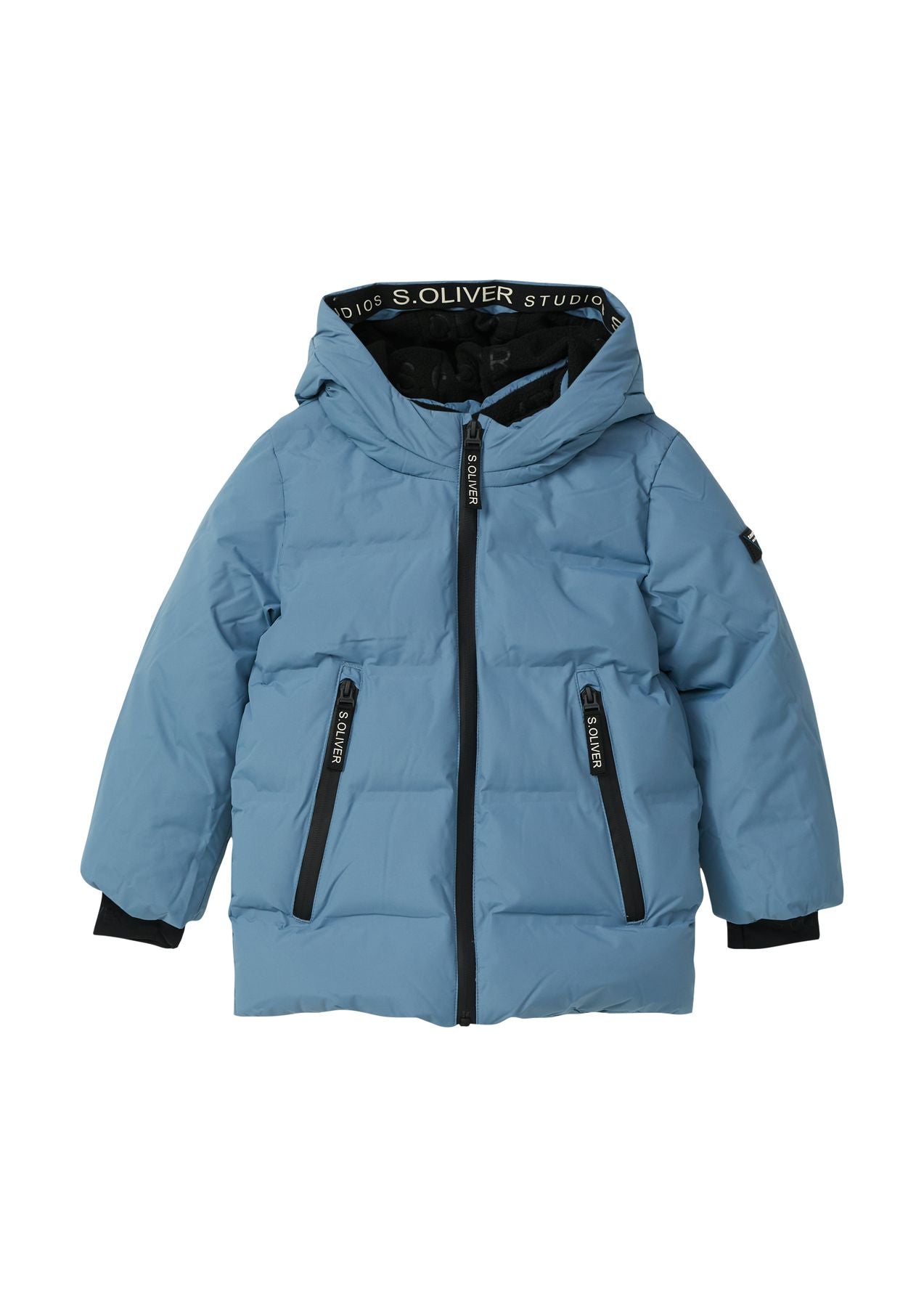 Warme Unisex Winterjacke für aktive Kids – mit kuscheligem Fleece- und Taftfutter, gefüttertem Stehkragen und Kapuze. Neopren-Windfangmanschetten, Daumenlöcher und versiegelte Reißverschlüsse schützen bei jedem Wetter. Praktische Taschen, coole Label-Details und eine hochwertig geprägte Steppung machen sie zum idealen Begleiter für Winterabenteuer.