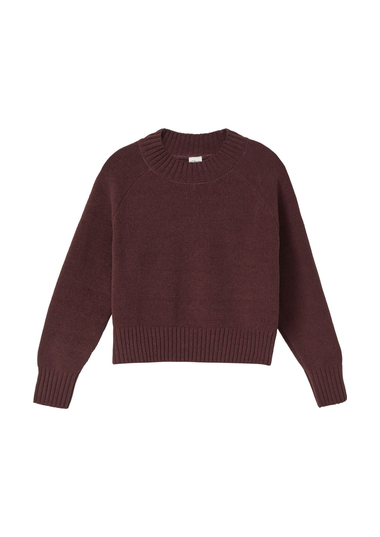 Kuscheliger Loose Fit Strickpullover aus Chenille-Garn mit Stehkragen. Der Raglanärmel und die Rippbündchen sorgen für Komfort. Der Rundhalsausschnitt mit Rippblende macht das Design komplett. Ein gemütlicher Begleiter für kühle Tage.