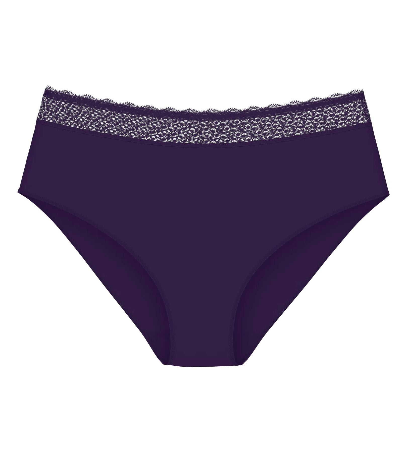 hautsympathischen und beruhigenden Eigenschaften auszeichnet. Der Bund ist mit Spitze eingefasst und ebenfalls recycelt. Ergänzt unser