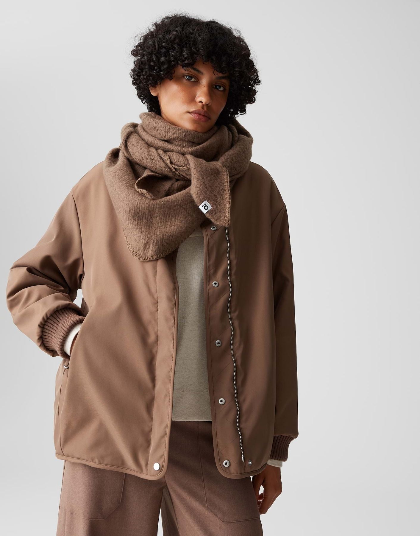 großes Dreieck, Maße: ca. 186 x 130 x 96 cm, flauschiger Griff, Bouclé-Strick, wärmender Stoff, auffällige Kanten, Logo-Aufnäher Farbe