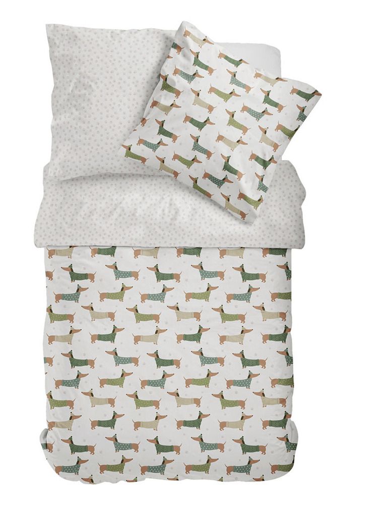 SATIN-WENDE-BETTWÄSCHE: Süßes Dackelmotiv vorne und dezente Pfoten-Prints auf der Rückseite versprechen tierisch gute Nächte. Die hochwertige Satin-Qualität sorgt für ein angenehmes Schlafgefühl. Aus 100 % Baumwolle. Mit Reißverschluss.