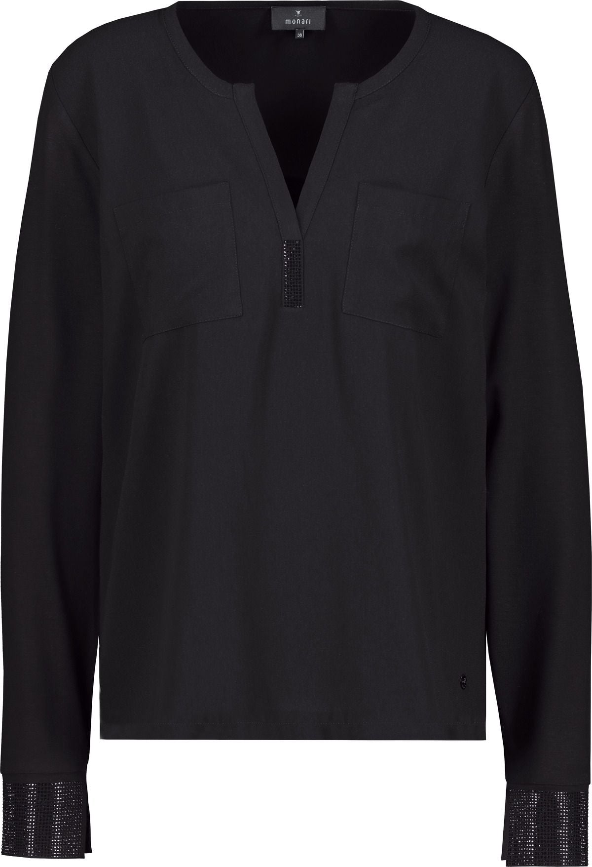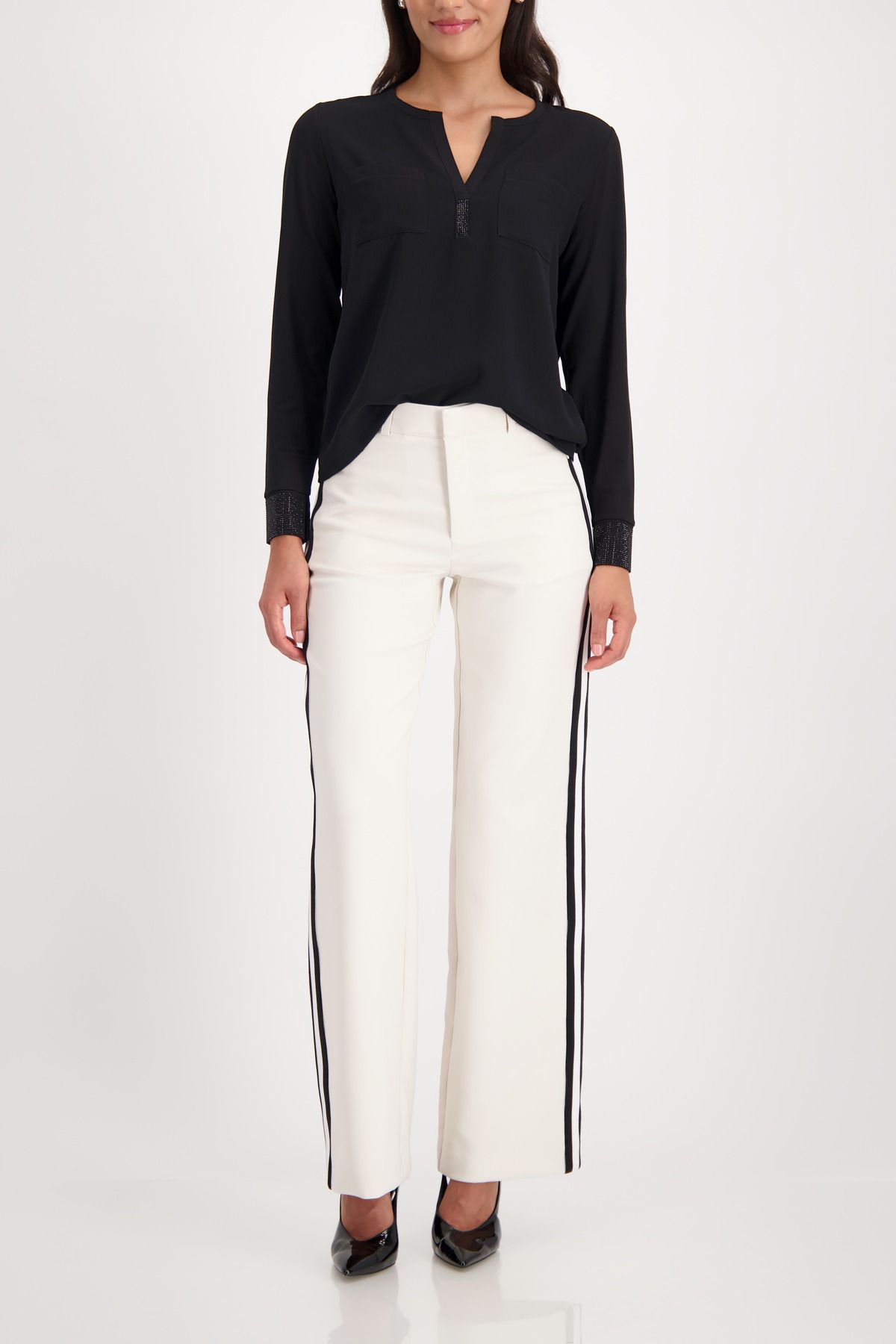 Elegante Crepe-Bluse aus fließender Viskose mit Strass besetzten Ärmelsaumen für einen glamourösen Look.