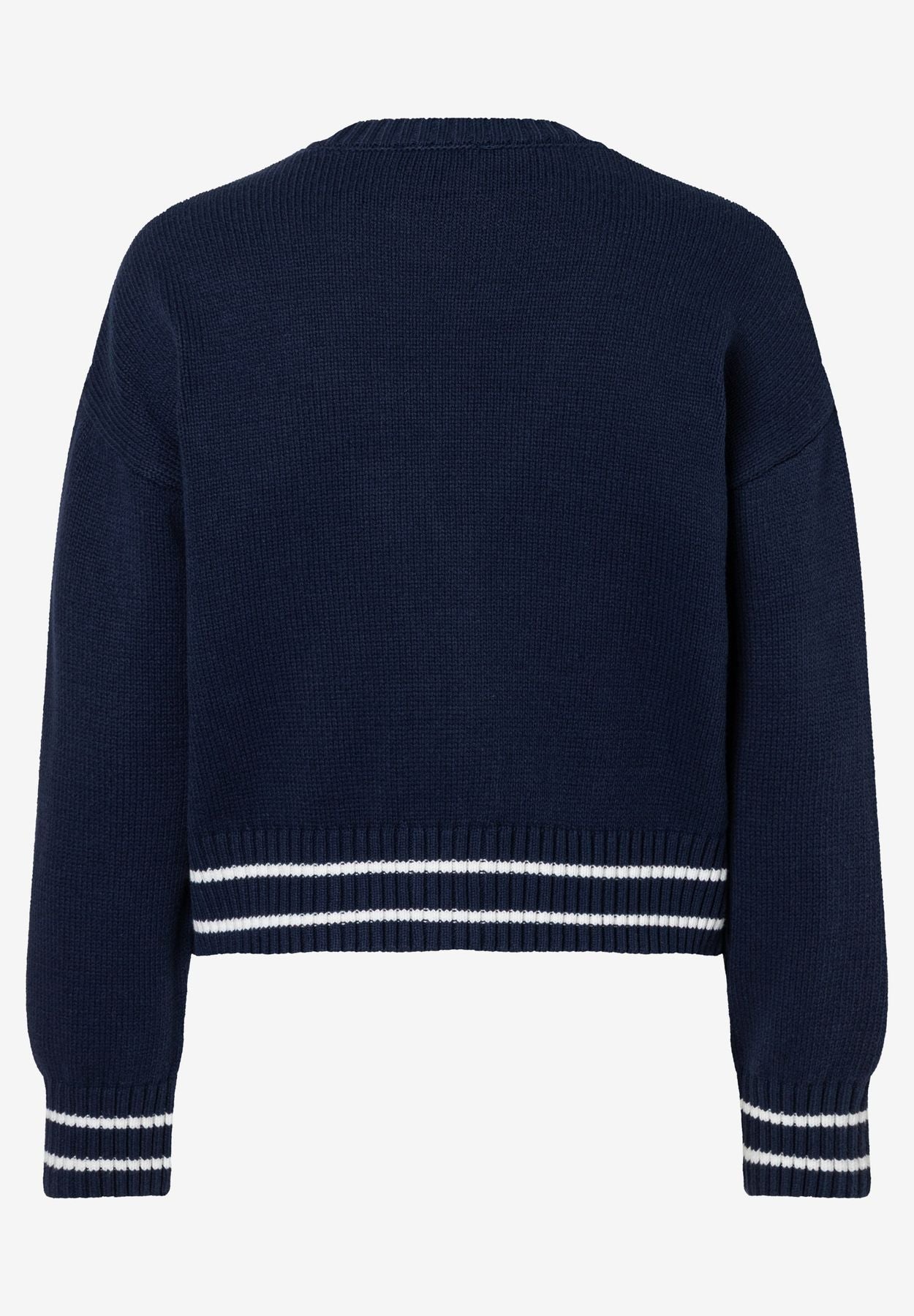 Der dunkelblaue Cardigan von MORE & MORE wird sicher ein Lieblingsstück in Ihrem Kleiderschrank. Das weiße Herz setzt einen süßen Akzent und macht den Look besonders lässig, zeitlos und perfekt zum Kombiieren - ideal für jeden Tag.