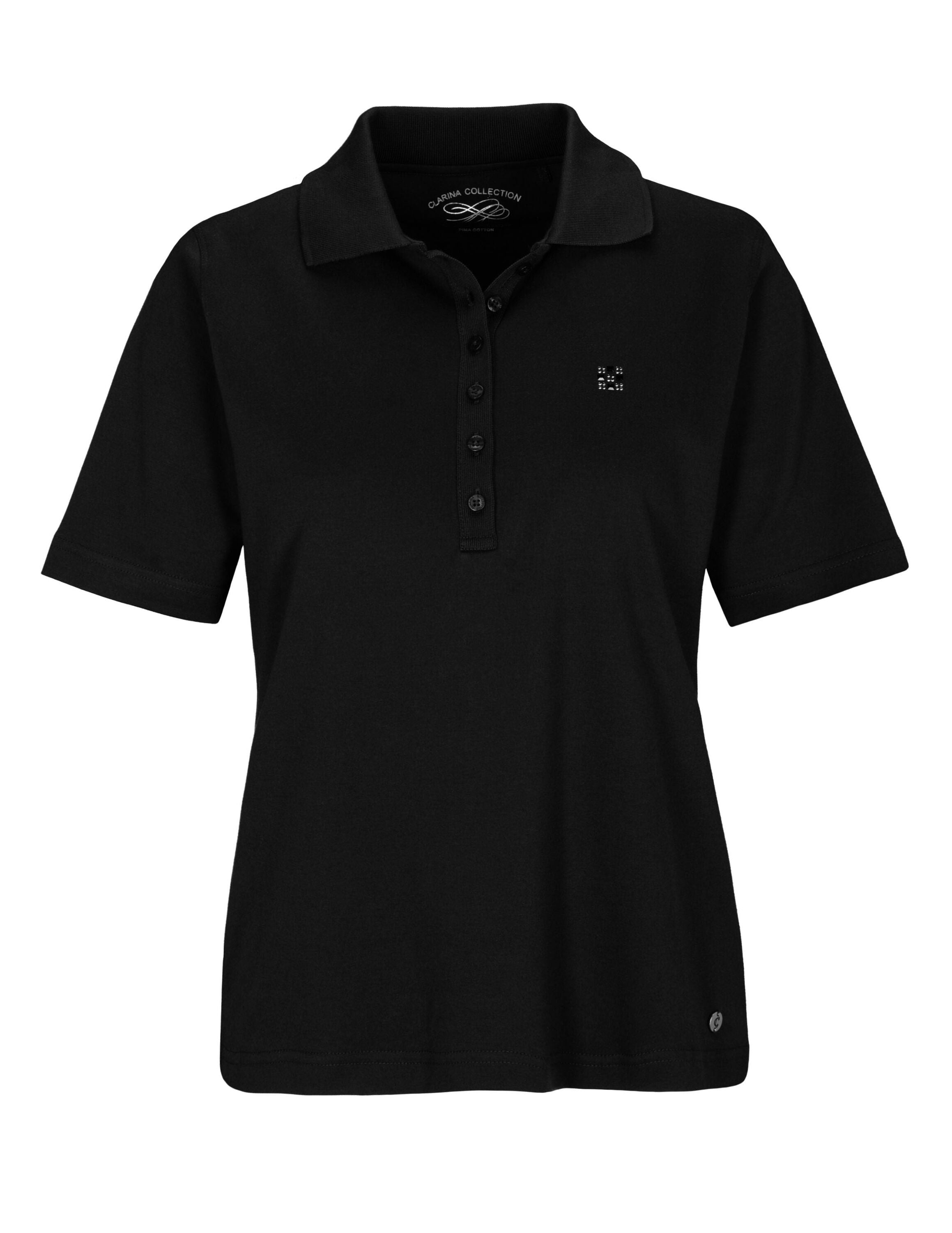 Modisches Basic! Klassisches Poloshirt von CLARINA mit Polokragen und kurzer Knopfleiste. Im unifarbenen Design lässt sich das Polo wunderbar vielseitig kombinieren. Kleiner Hingucker: glitzernde Ziersteine auf Brusthöhe. Farbe
