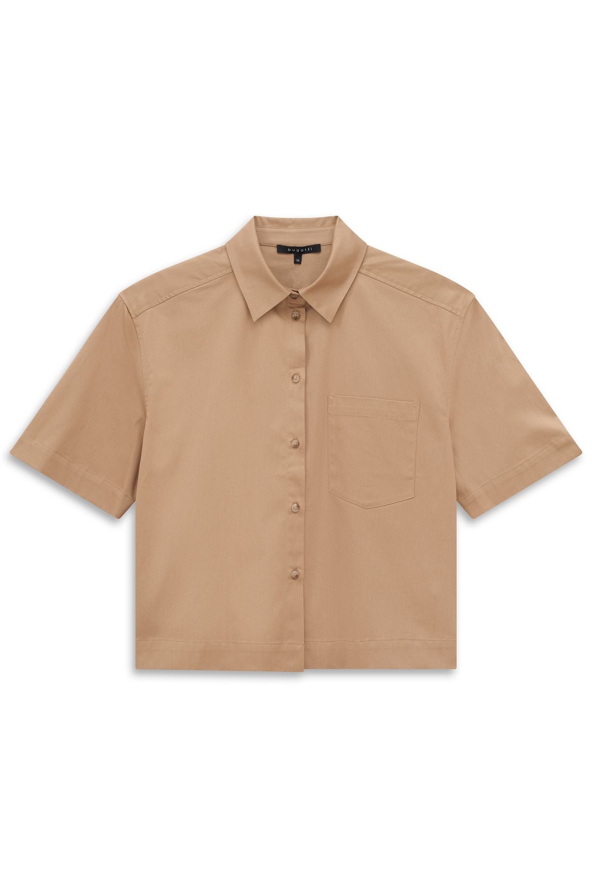 Kürzer geschnittene Hemdbluse mit 1/2 Arm aus einer Baumwollmischung