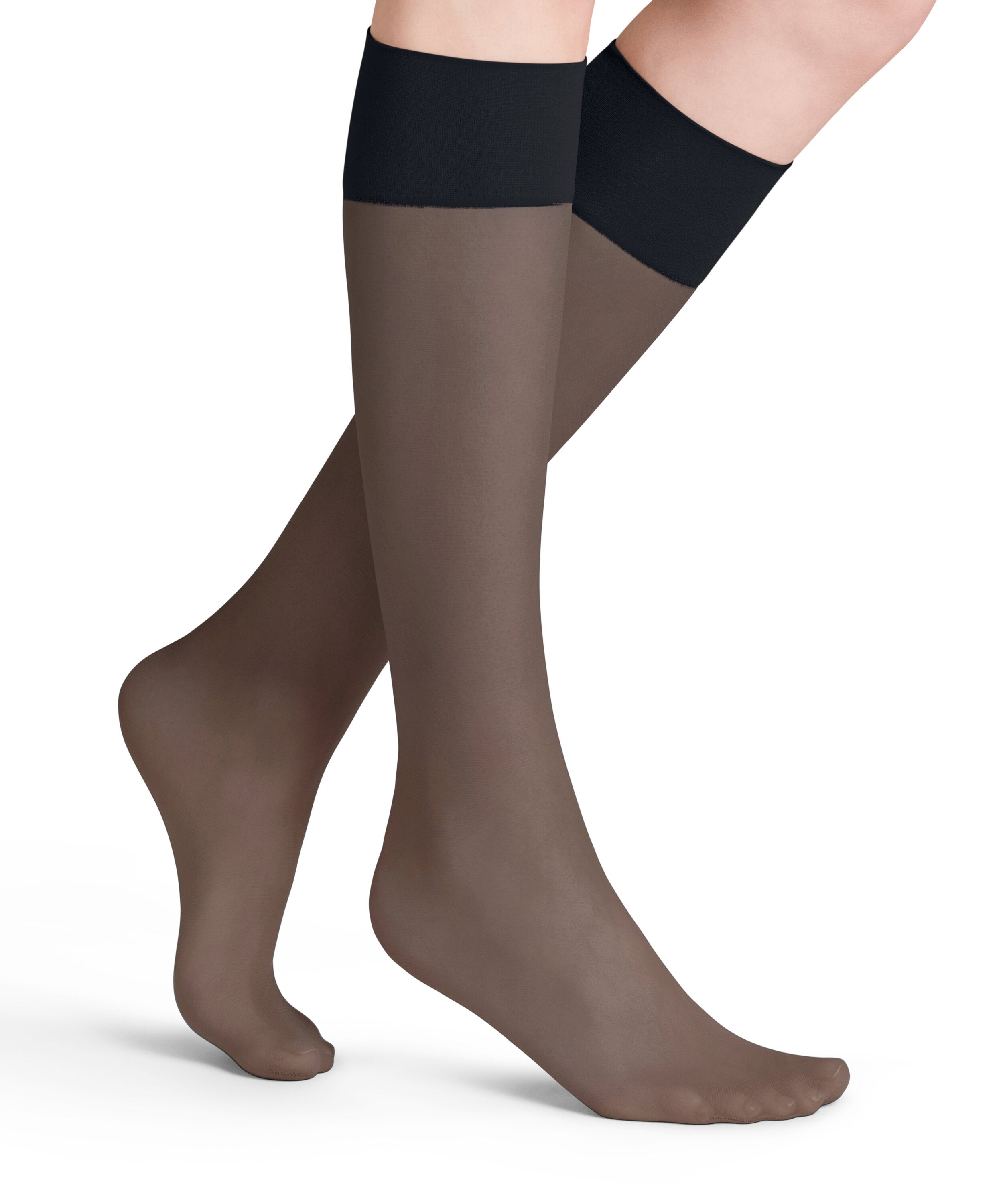 Matte, transparente Feinkniestrümpfe aus nachhaltiger FALKE − WE CARE − Garnkomposition für ebenmäßig schöne Beine. Bei dem samtig feinen Material handelt es sich um anteilig recyceltes Polyamid aus Produktionsresten. Das Recycling erfolgt in einem umweltschonenden mechanischen Verfahren ohne Einsatz von Chemikalien. Hergestellt ohne den Zusatz von Silikonweichmachern, überzeugen die Pure Matt 20 Kniestrümpfe nicht nur durch ihre elegante und matte Optik: Ein angenehmes Sensitive Top Bündchen sowie Fußspitzen mit feinster Softnaht sorgen für einen angenehmen, druckfreien Sitz. Der perfekte Begleiter im Alltag.