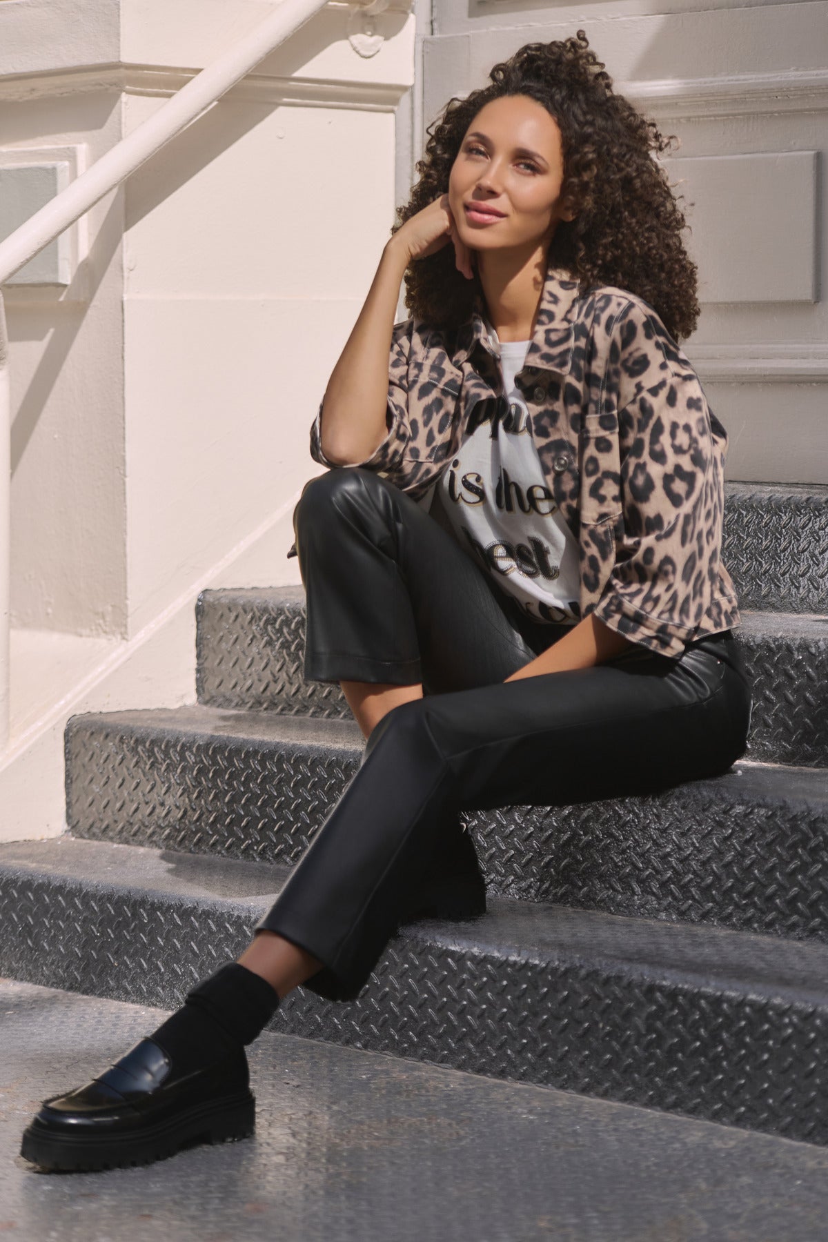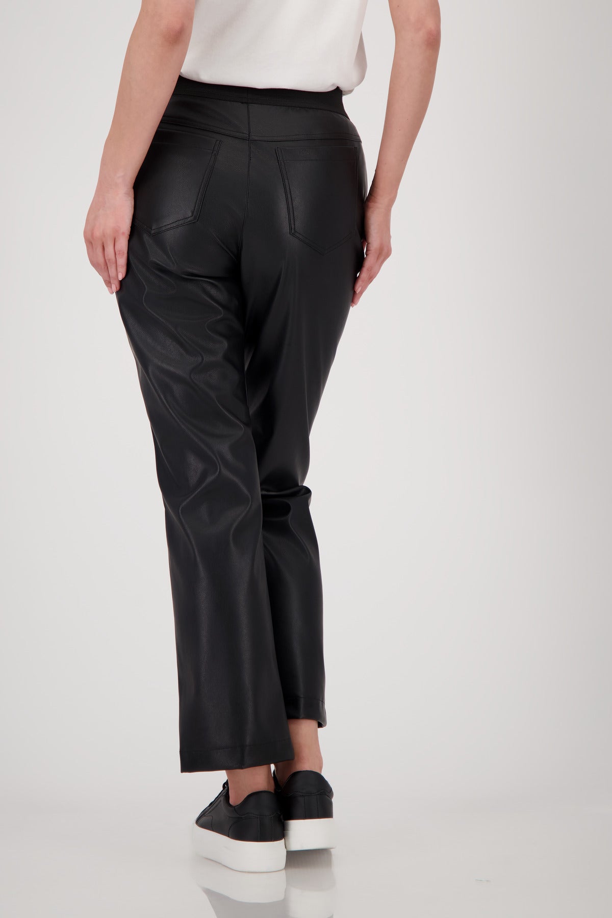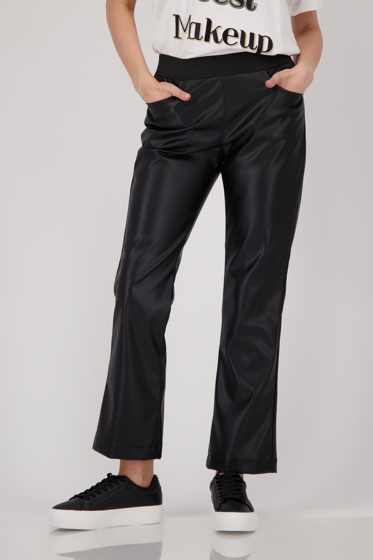 Stylische Hose in Lederoptik mit Straight-Leg-Schnitt und elastischem Bund – bequem, modern und vielseitig kombinierbar für trendige Alltags- oder Abend-Looks. Farbe