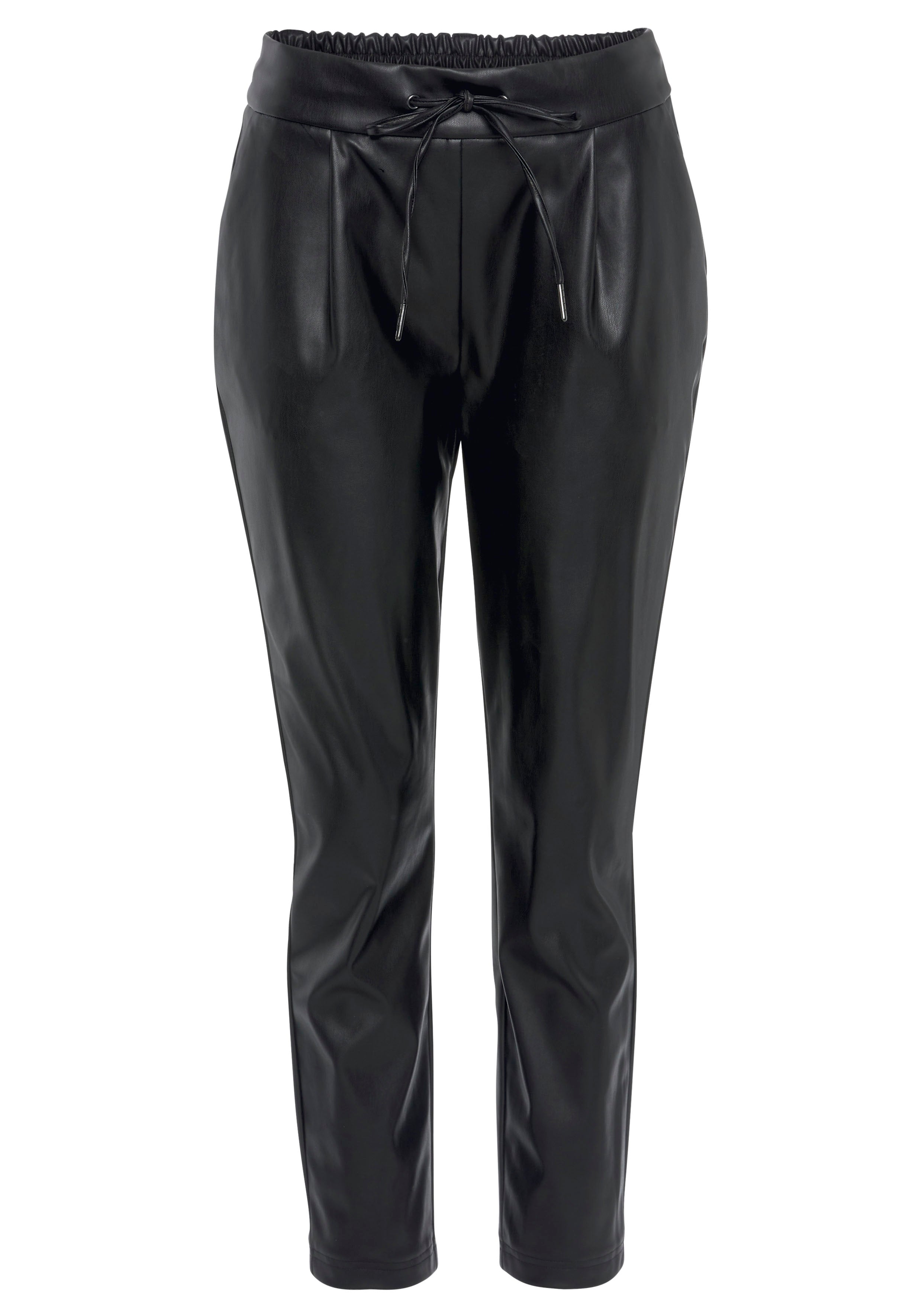 lascana Joggpants von Lascana in Lederoptik. Gummizugbund mit glatter Front und Tunnelzug. Seitliche Eingrifftaschen. Schmal zulaufend geschnitten. Leicht glänzende Lederimitatqualität.