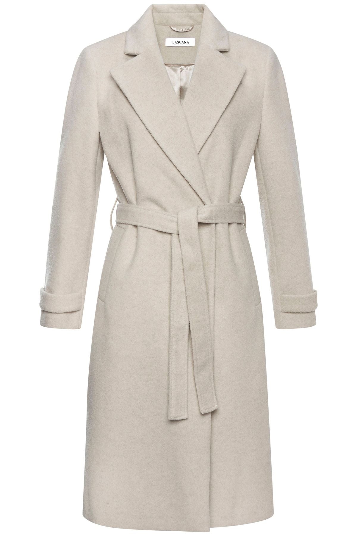 LASCANA Klassischer Übergangsmantel von Lascana mit Reverskragen. Bindegürtel in der Taille. Zwei Druckknöpfe zum Verschließen. Knopfriegel an den Ärmeln. Vorn schräge Leistentaschen. Besonders weiche Qualität durch angeraute Oberfläche.