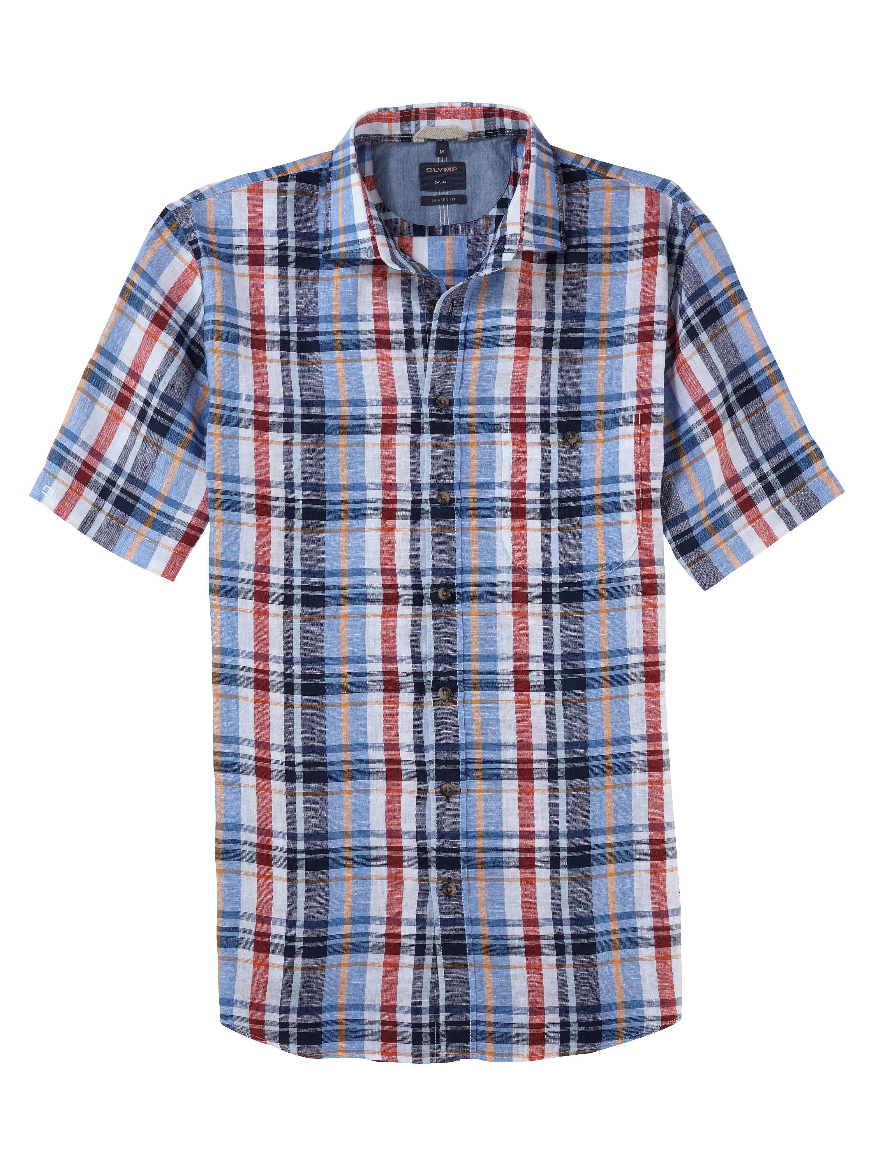 Da werden starke Männer schwach: Ein Kurzarm-Karohemd muss man(n) einfach haben. Als besonders charmante Variante empfiehlt sich dieses Modell der Linie OLYMP Casual, hier in der Farbstellung Rot. Das hochwertige Webkaro ist aus reinem Leinen gefertigt und kombiniert so die maskuline Optik mit angenehm kühlender Textur. Der leicht taillierte Modern Fit passt optimal in ein modernes Bekleidungskonzept und wird durch den klassischen Kent stilvoll komplettiert. Ein cooler Allrounder für die bewegte Freizeit im OLYMP. Wenn’s leicht sein soll.