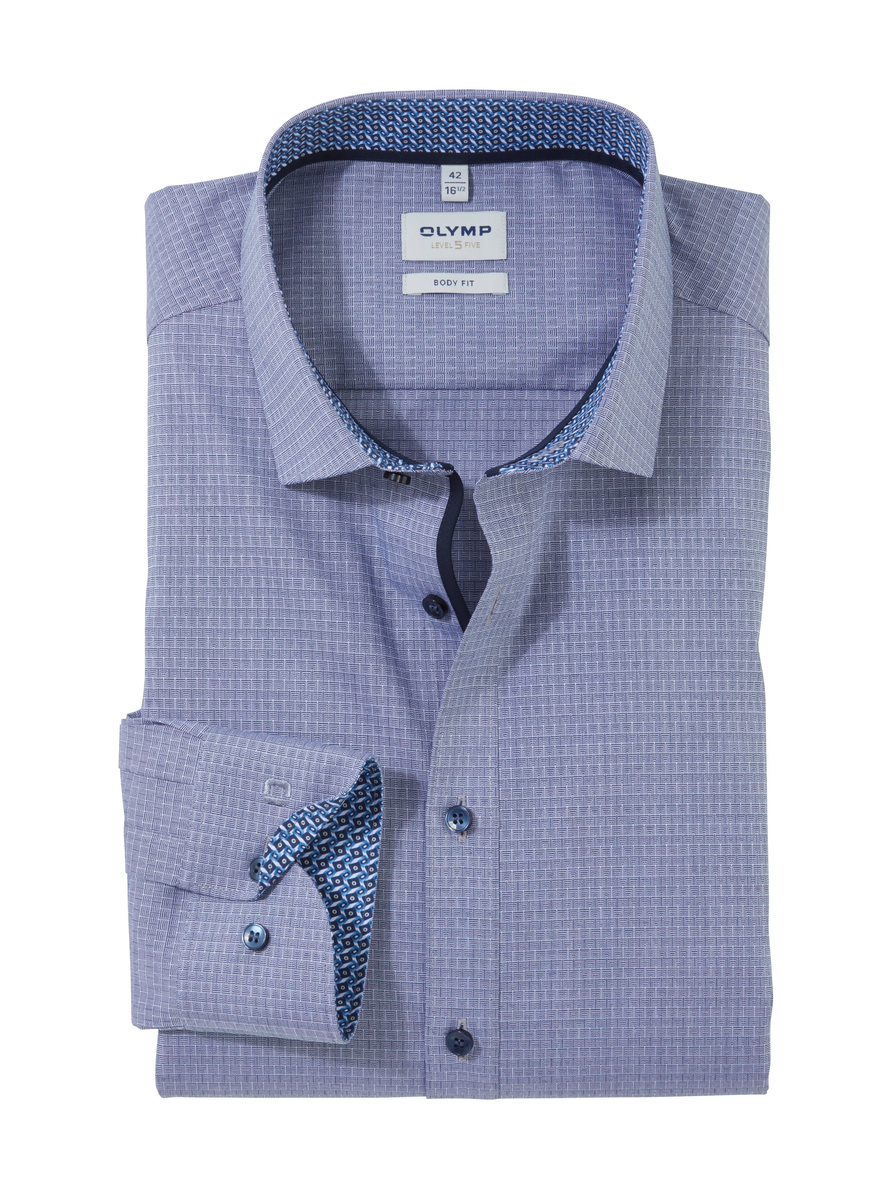 Das matt schimmernde Webmuster dieses OLYMP Level Five Businesshemds in souveränem Marine ist ein stilvoller Allrounder. Reine Baumwolle- und Elastolefinfasern im bewährten Comfort Stretch sorgen für hautsympathischen Tragekomfort und bügelleichtes Handling. Geschnitten in körperbetonter Body-Fit-Silhouette, vollendet mit sportivem Modern Kent und akzentuiert mit kontrastiven Details.