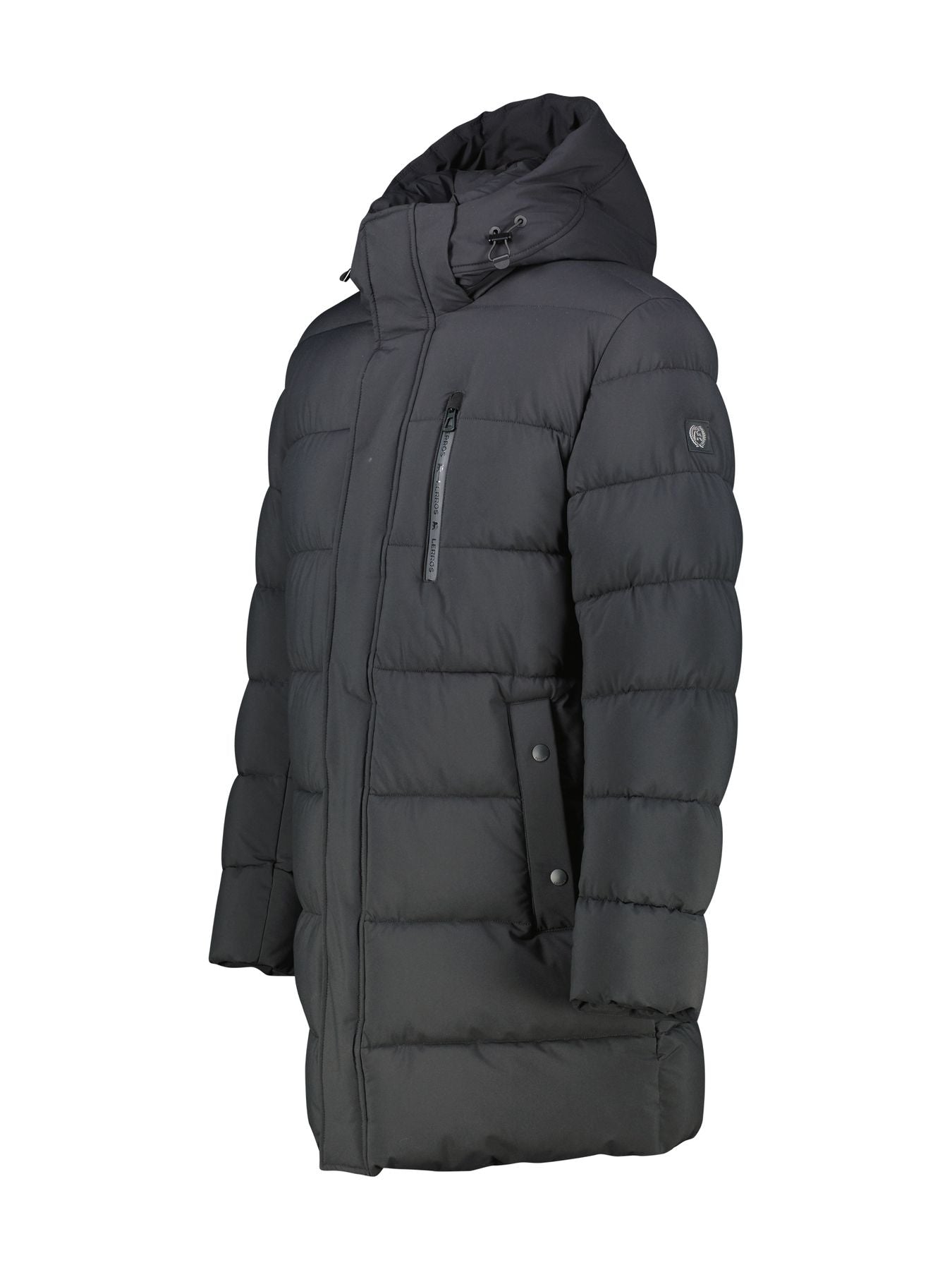 LERROS Steppjacke mit hohem Stehkragen und Kapuze! Diese Herrenjacke überzeugt durch ihr groß-gestepptes Design, die lange Schnittform und die abnehmbare Kapuze. Das wasserabweisende, atmungsaktive, knitterfreie und dehnbare Material mit Stretchanteil wird durch die warme Fütterung aus synthetisch erzeugten, extraleichten und PFC-freien Soronadaunen ergänzt und bietet somit hohen Tragekomfort und Schutz vor Kälte. Die verschließbaren Eingrifftaschen mit wärmendem Taschenfutter und der Zwei-Wege-Reißverschluss mit Windschutzleiste und die Ärmelsäume mit Windfang runden die Funktionalität dieser Outdoorjacke gekonnt ab. Farbe