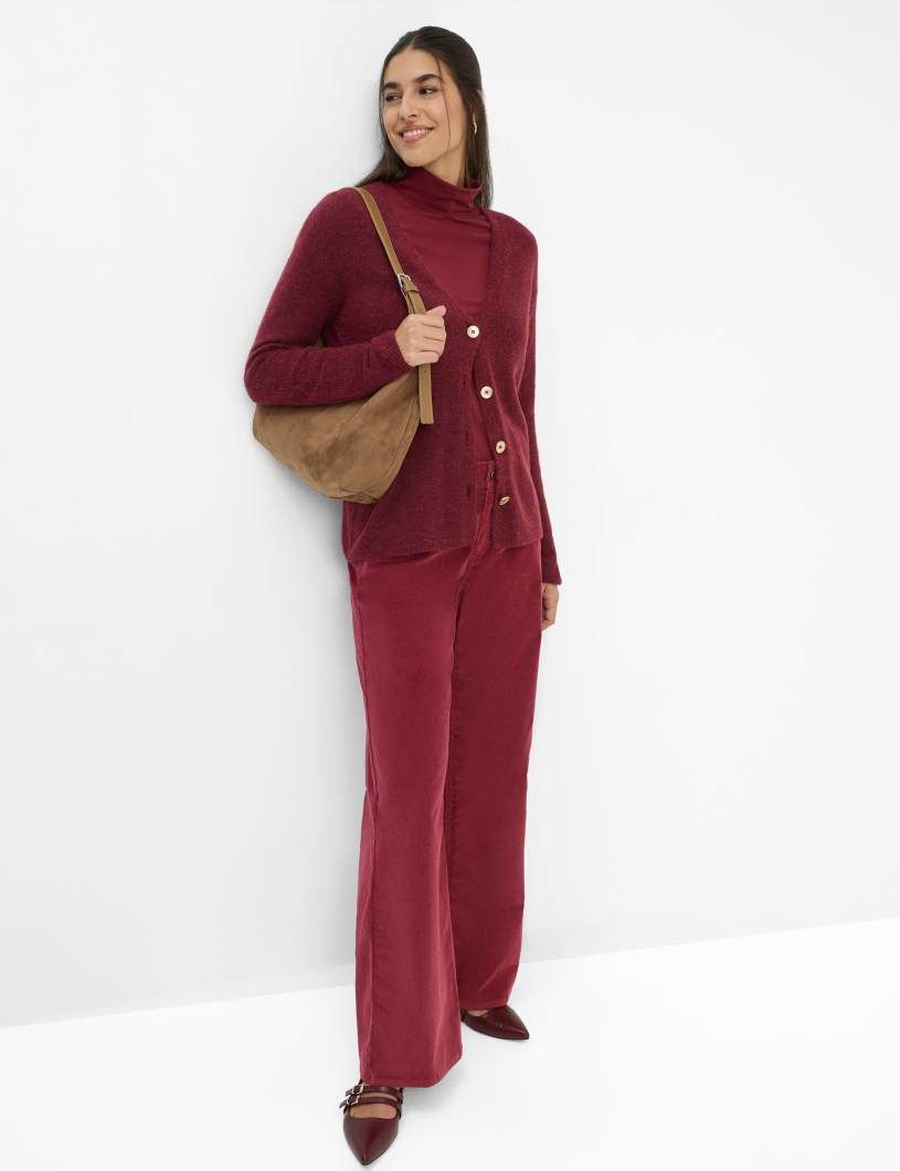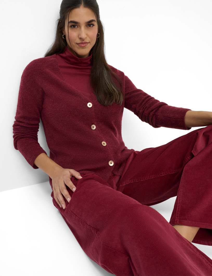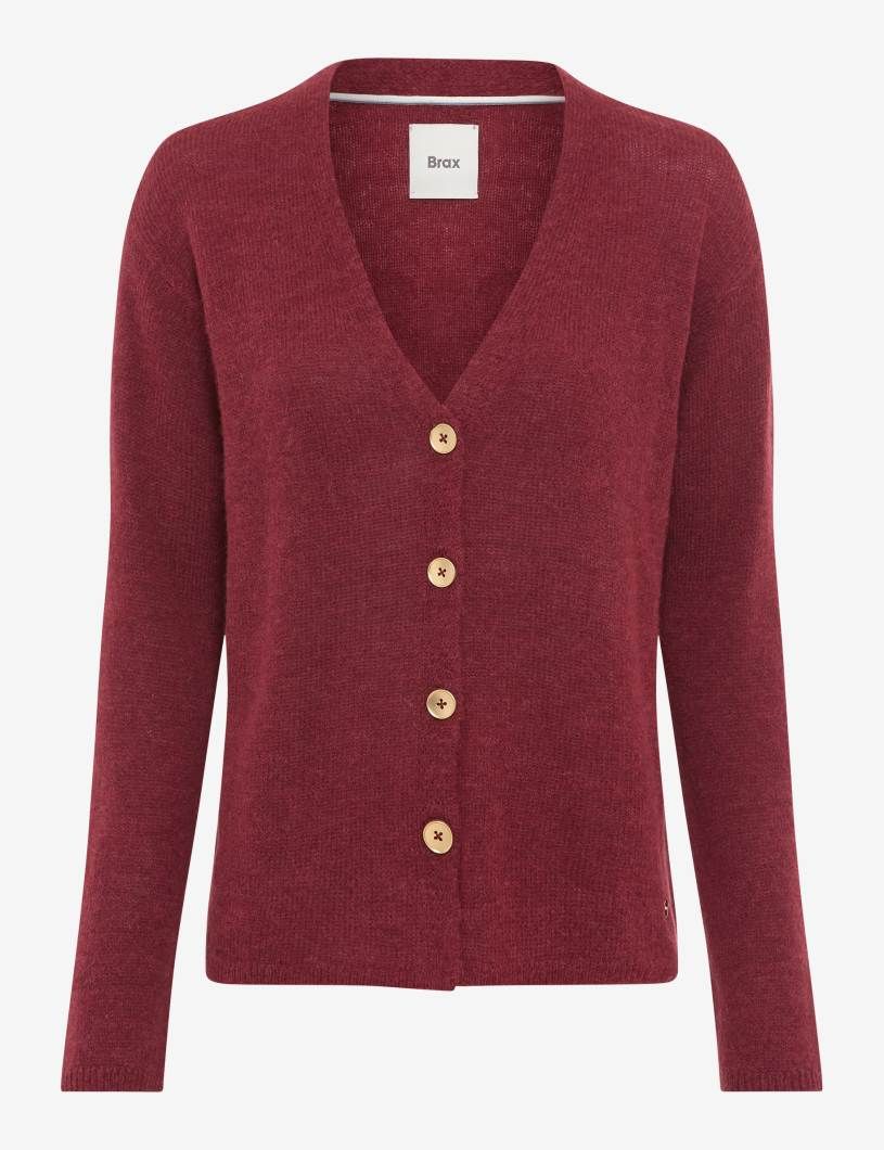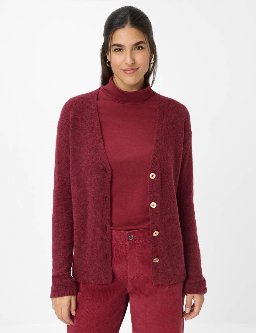Ein stilvoller Begleiter für die kalte Jahreszeit: Die Strickjacke im STYLE ALICIA vereint zeitlose Eleganz mit hochwertiger Verarbeitung und wird so zum unverzichtbaren Highlight Ihrer Herbst- und Wintergarderobe. Die gerade, schmeichelhafte Silhouette und der klassische V-Ausschnitt verleihen diesem Cardigan eine feminine Note, während die markante Knopfleiste und feine Minderungsdetails für das gewisse Etwas sorgen. Gefertigt aus edlem Single Jersey im luxuriösen Alpaka-Mix begeistert die Jacke mit einer besonders weichen Haptik und hervorragenden wärmenden Eigenschaften – ein perfekter Schutz an frostigen Tagen. Der Materialmix aus Polyamid, Alpaka und Wolle überzeugt durch Leichtigkeit, Langlebigkeit und Formstabilität, die höchsten Tragekomfort garantieren. Diese Strickjacke ist wie gemacht für stilbewusste Frauen, die Qualität und Design zu schätzen wissen.