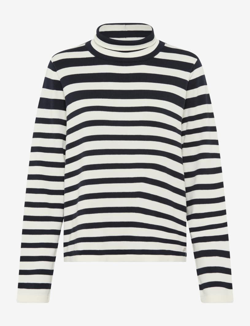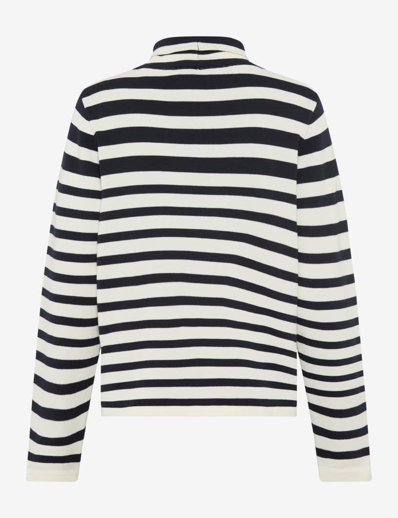 Mit klarer Linie und ausdrucksstarkem Design setzt der Strickpullover im Style LESLEY ein modisches Statement. Das markante Blockstreifen-Muster verleiht der gerade geschnittenen Silhouette mit Stehkragen eine moderne Dynamik und zeitgemäßen Look. Die angenehm weiche Baumwolle schmiegt sich sanft an die Haut, ist atmungsaktiv und garantiert ein rundum komfortables Tragegefühl – ideal für jede Jahreszeit. Durch die strukturierte Optik erhält der Damenpullover eine besondere Haptik, die für Abwechslung sorgt und einen lebendigen, modernen Charakter gibt.