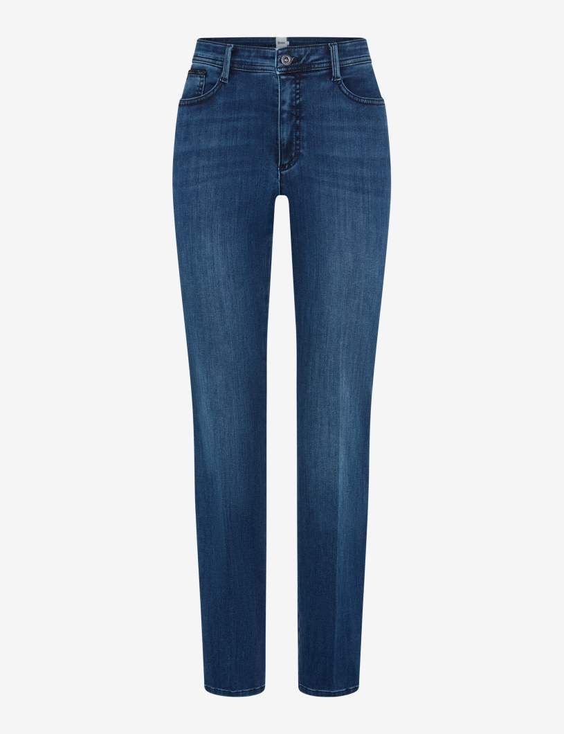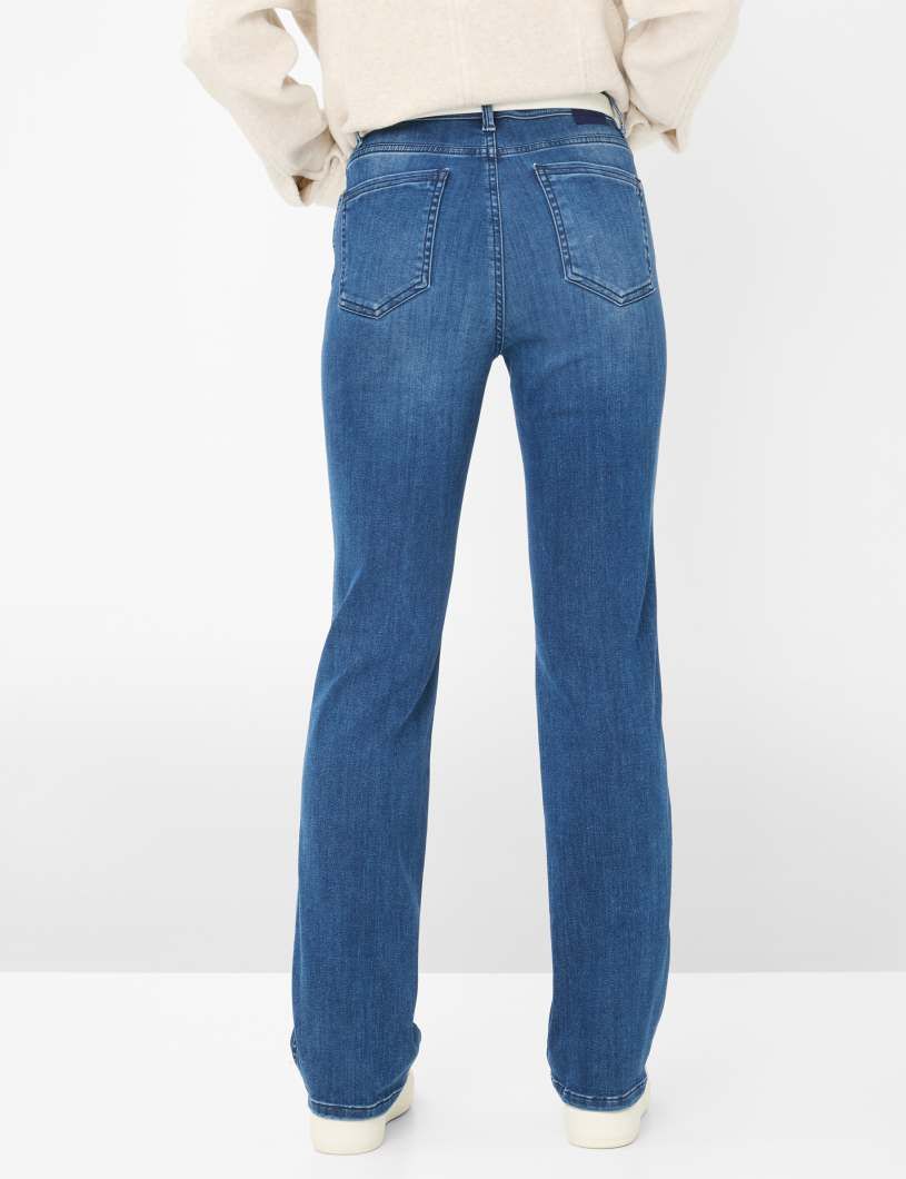 Die Five-Pocket-Jeans im STYLE MARY begeistert im Regular Bootcut mit einer leicht ausgestellten Silhouette, die das Bein optisch streckt und für eine feminine Linie sorgt. Die normale Leibhöhe unterstreicht die zeitlose Passform, während die Kombination aus Knopf- und Reißverschluss ein komfortables An- und Ausziehen garantiert. Praktische Details wie aufgesetzte Gesäßtaschen, Einschubtaschen und die kleine Coinpocket ergänzen den authentischen Denim-Look und machen das Design besonders vielseitig. Ein dezent gearbeiteter Bügelbruch verleiht der Hose zusätzlich eine elegante Note und betont die klare Linienführung. Gefertigt aus einer hochwertigen Baumwoll-Mischung mit Polyester, Viskose und Elasthan verbindet die Hose Tragekomfort mit Formbeständigkeit. Während Baumwolle für ein natürliches, angenehmes Gefühl auf der Haut sorgt, bringt die Viskose einen weichen Fall ins Gewebe. Polyester verleiht Strapazierfähigkeit und Langlebigkeit, während der Elasthananteil die nötige Flexibilität für einen perfekten Sitz bietet. Besonders in den Wintermonaten überzeugt die innovative Thermo-Denim-Qualität, die zuverlässig Wärme speichert und dennoch atmungsaktiv bleibt – ideal für stilvolle Looks bei kühlem Wetter. Farbe