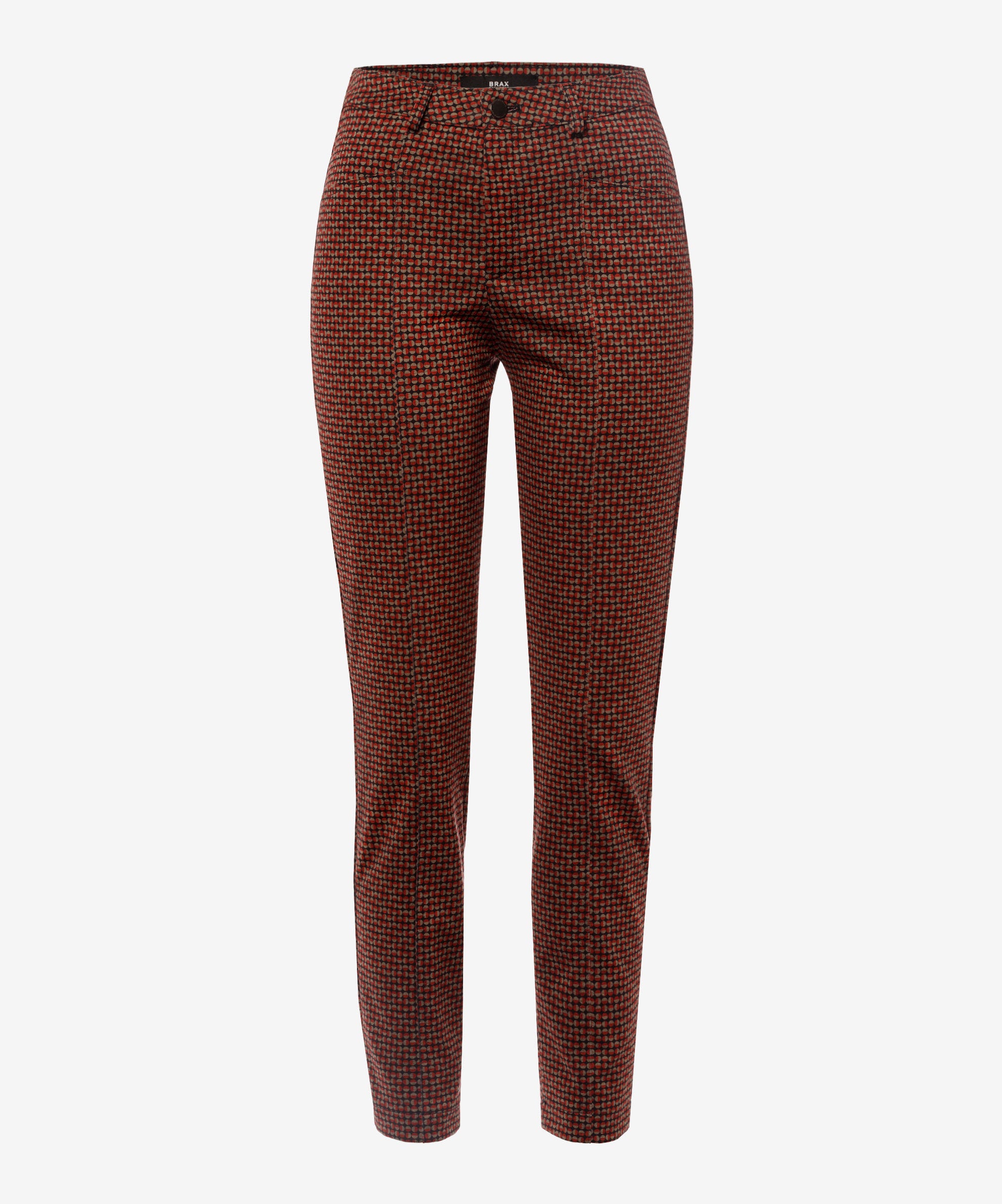 Für Damen ist der Style SHAKIRA S ein Must Have. Ob smart mit Loafern oder leger mit Sneakern - mit der 7/8 Flatfronthose gelingt Ihnen immer ein modebewusster Look. Die Slim Fit Damenhose mit regulärer Taille setzt dank schlankem Schnitt Beine und Po optimal in Szene. Eine klassische Optik erhält die Hose insbesondere durch die schrägen Stecktaschen und unterstreicht mit dem trendsicheren Print den Zeitgeist. Zusätzlich ist sie mit markanten Teilungsnähten gearbeitet. Cozy, smooth und soft zeichnet sich der Jersey aus. Ein kompaktes Warenbild mit simpler Struktur sind die Features dieses vielseitigen Trendstoffes. Der knitterarme und funktionale Polyestermix bietet außerdem bei dieser Flatfronthose ein einwandfreies Tragegefühl.Form: